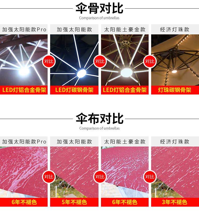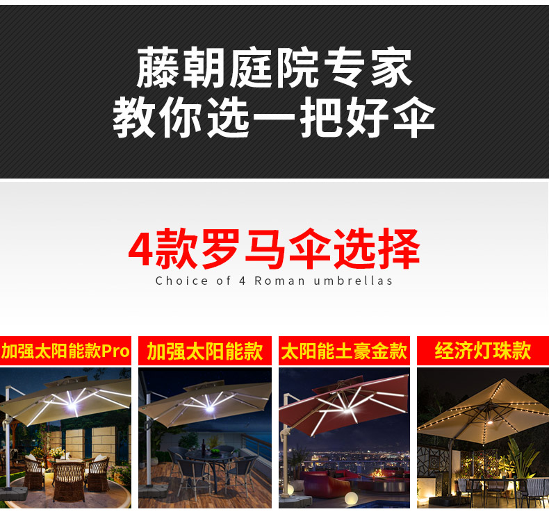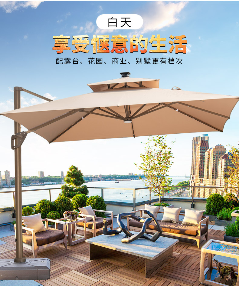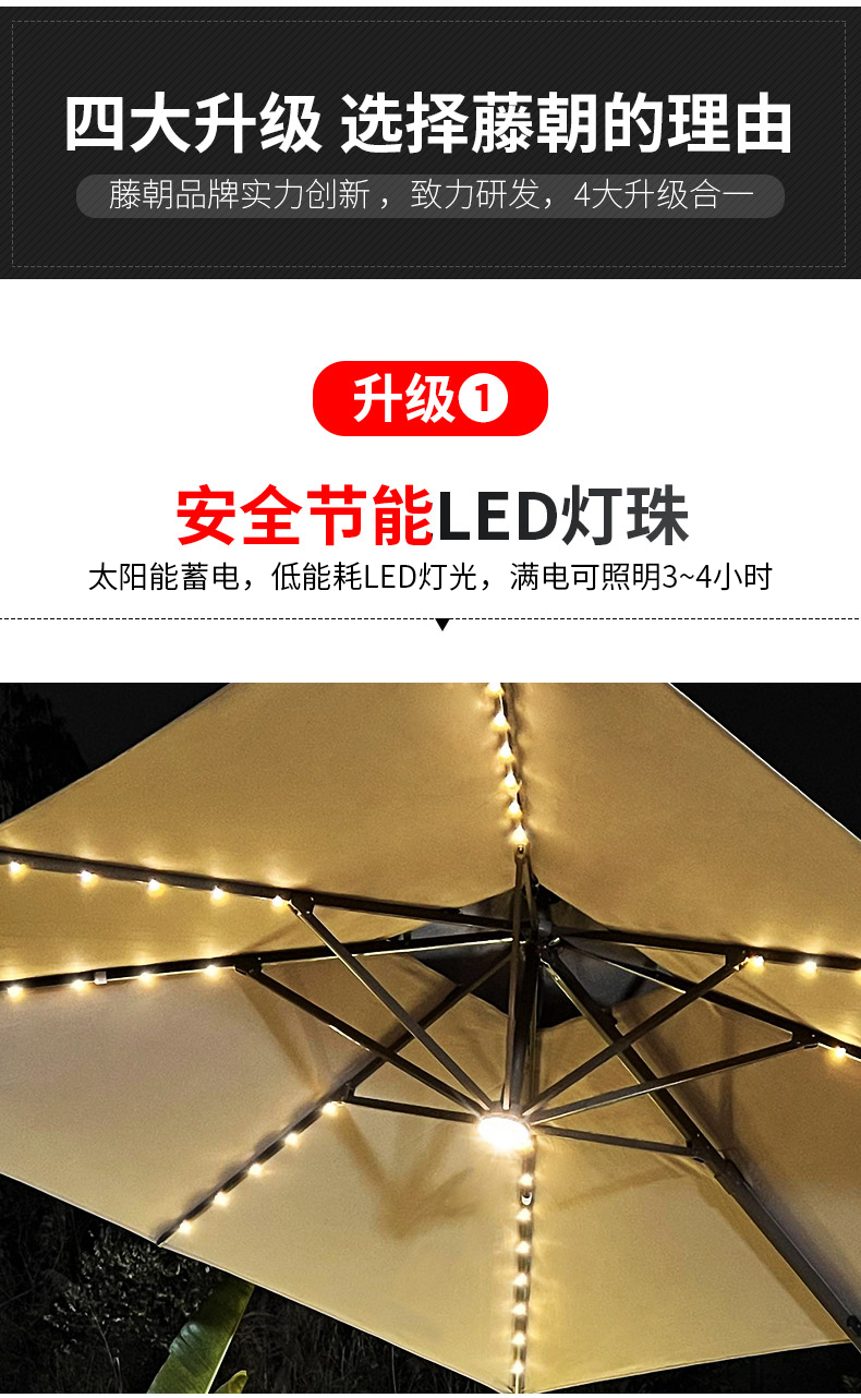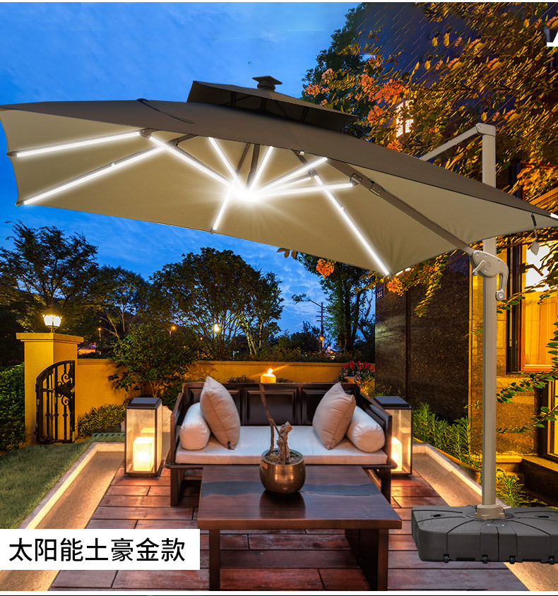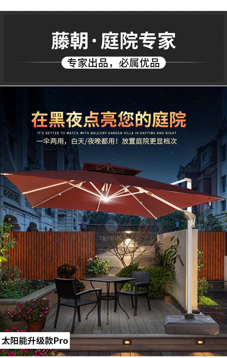 产品简介:藤朝庭院太阳能伞室外露天花园天台罗马伞家用别墅户外露台伞带灯...