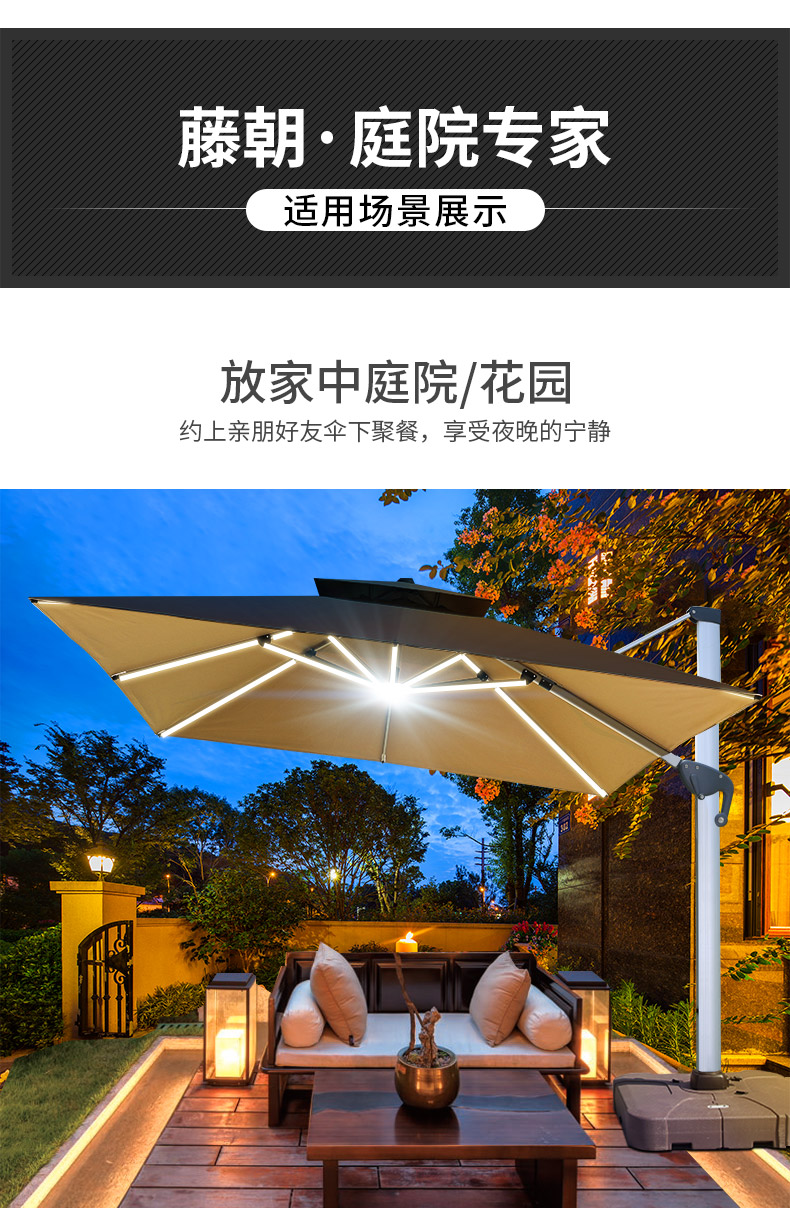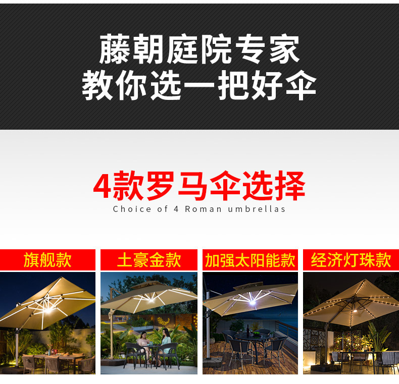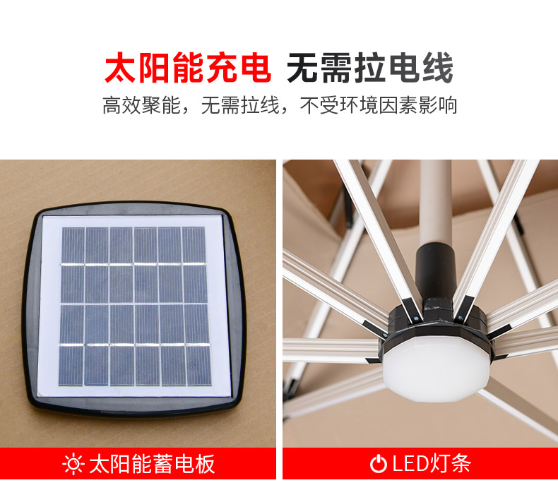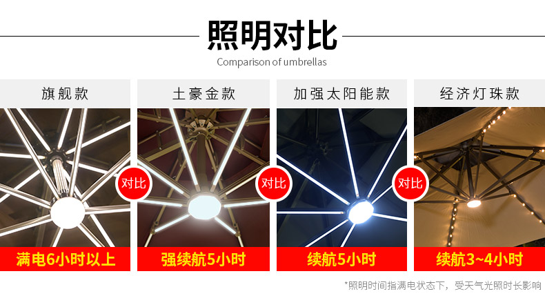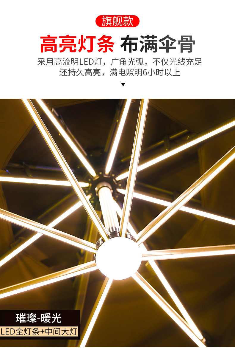 满电照明6小时,户外太阳能带灯高亮罗马遮阳伞