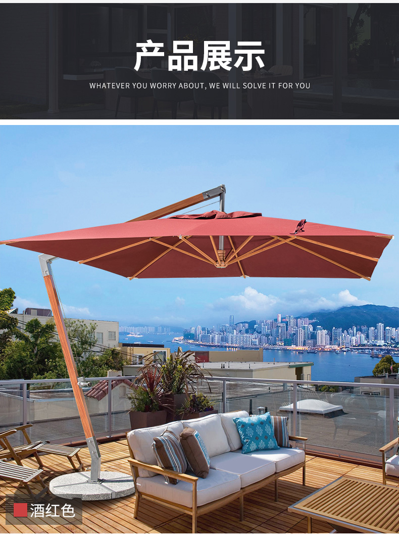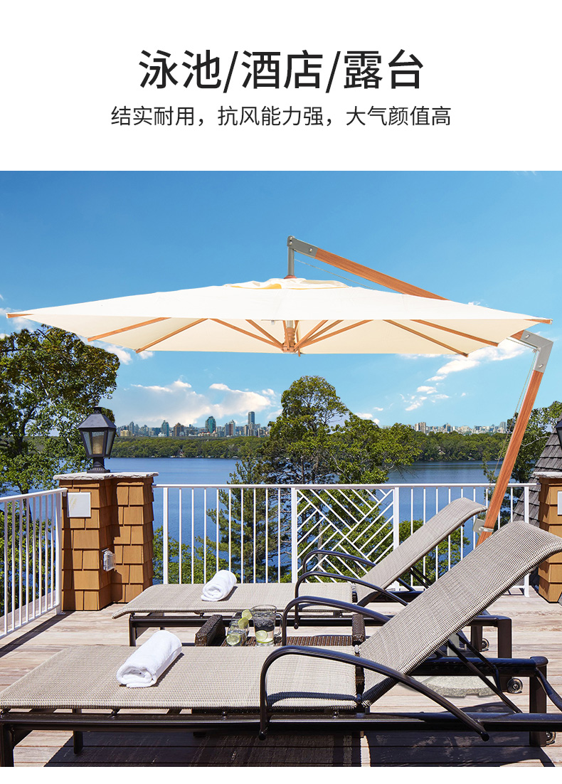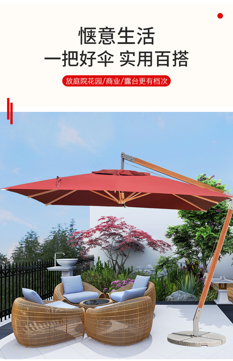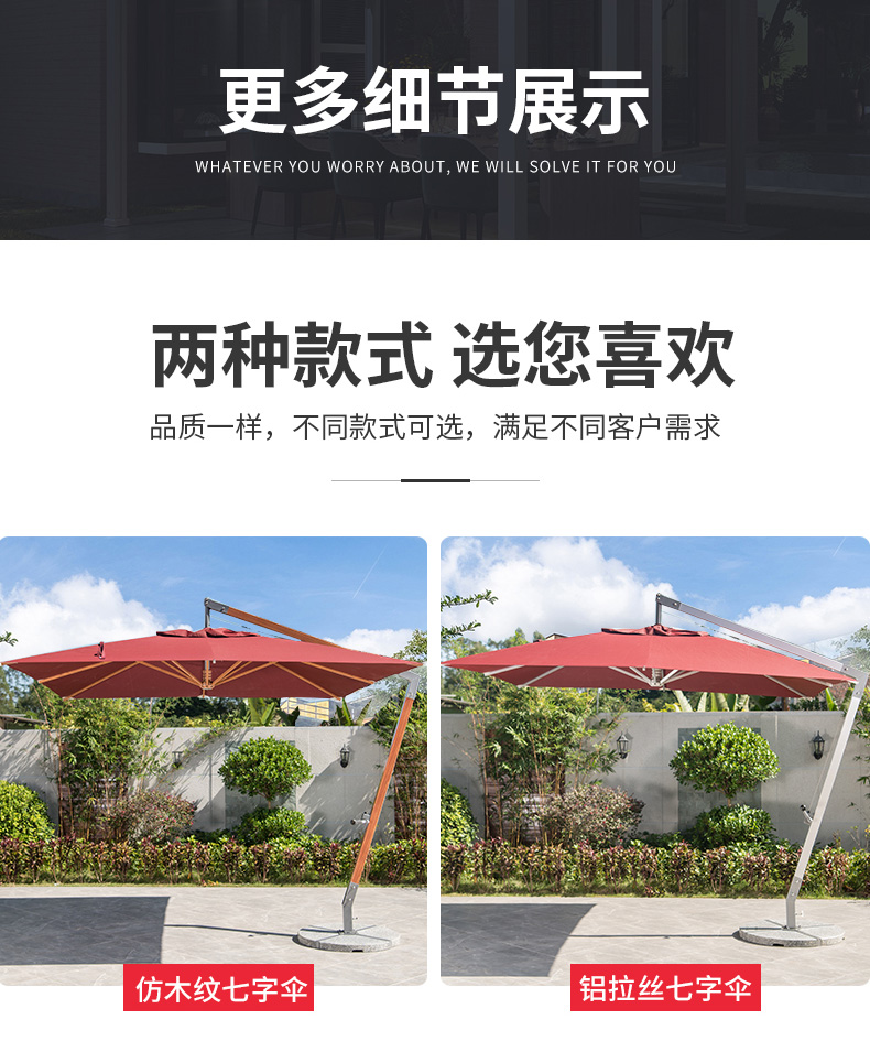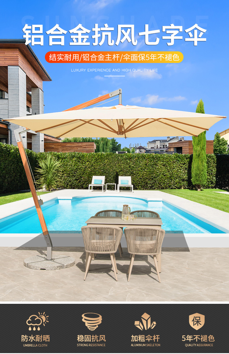 产品简介:藤朝高端铝合金罗马伞户外伞七字大伞室外遮阳伞别墅庭院大太阳伞...
