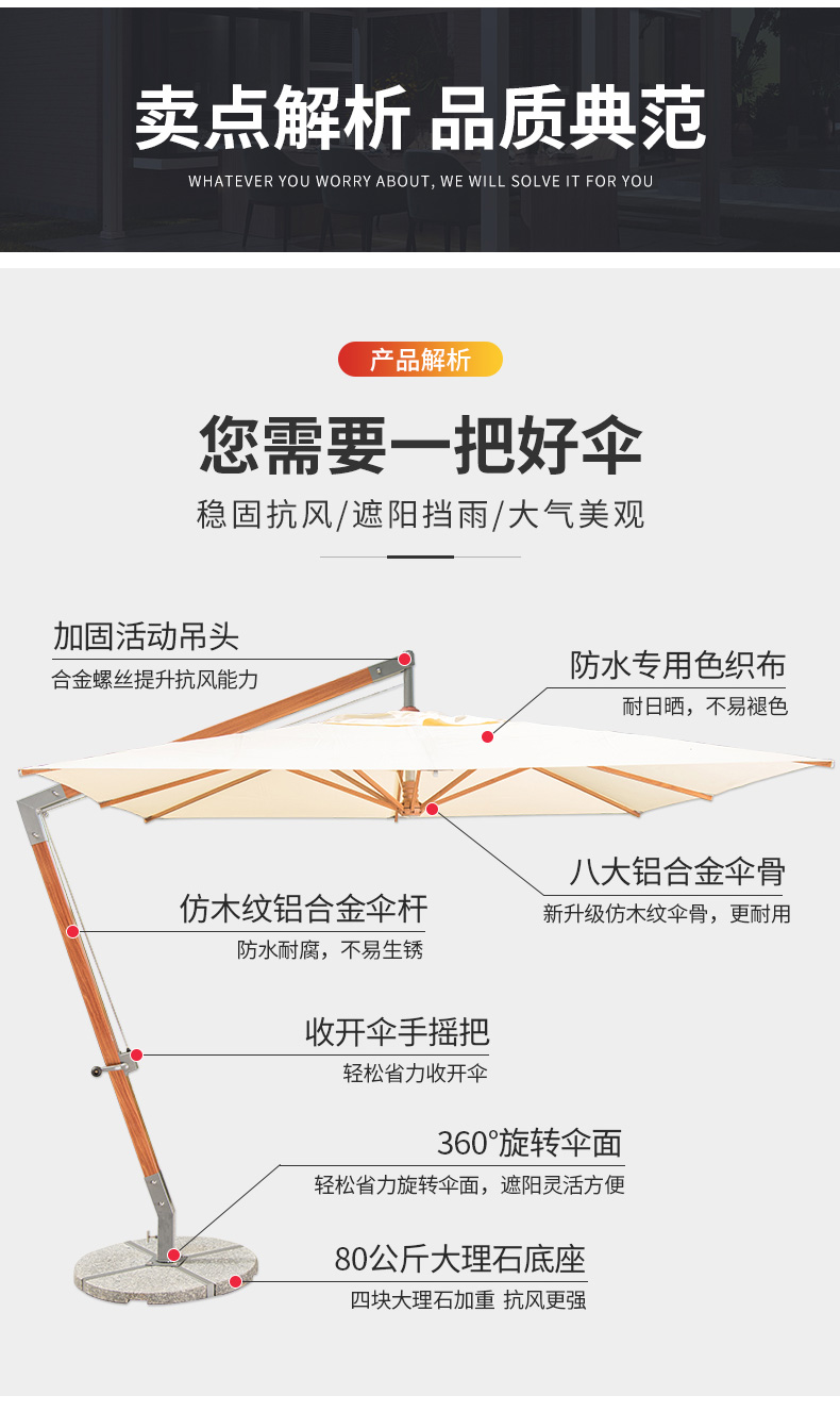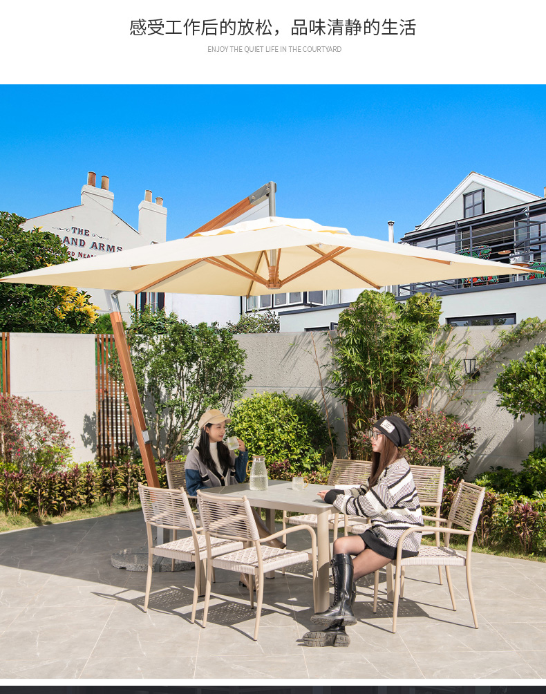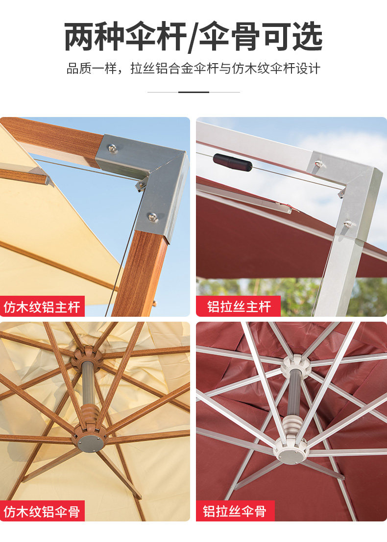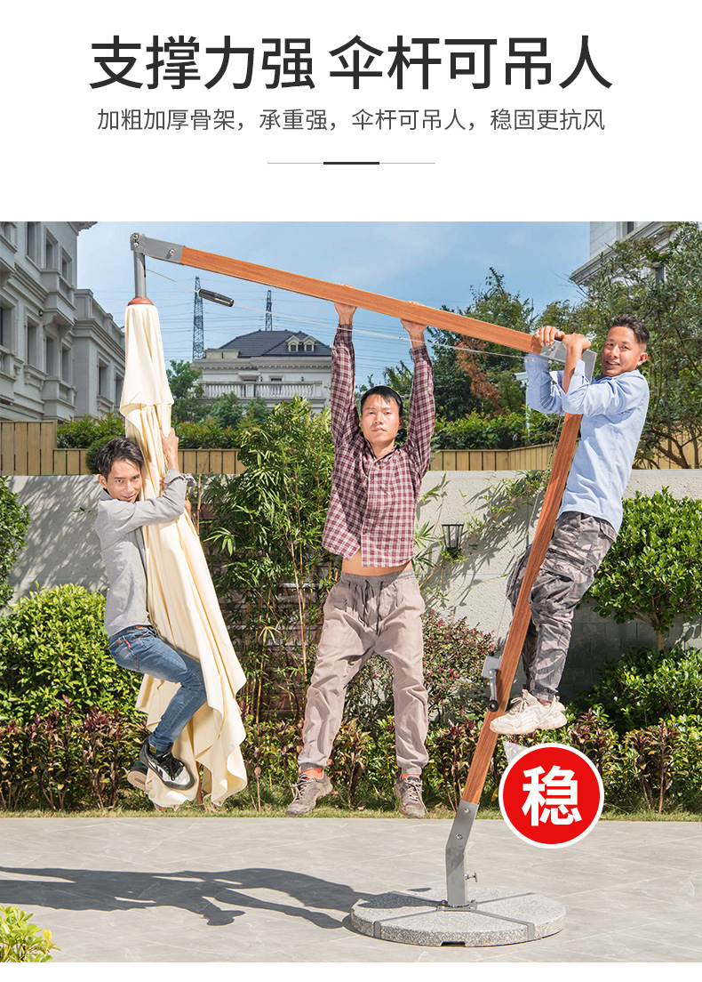 产品简介:藤朝高端铝合金罗马伞户外伞七字大伞室外遮阳伞别墅庭院大太阳伞...