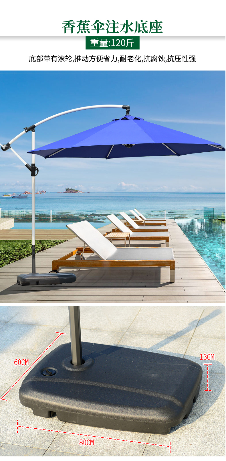 产品简介:藤朝太阳伞底座固定不倒户外遮阳伞庭院伞罗马伞地面压重注水底座...