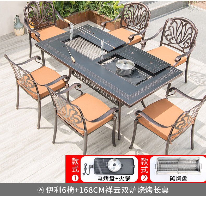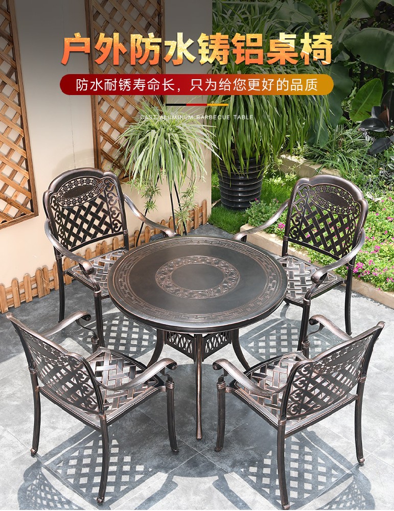 藤朝防雨户外铸铝桌椅烧烤组合休闲庭院花园别墅露天室外耐用长桌