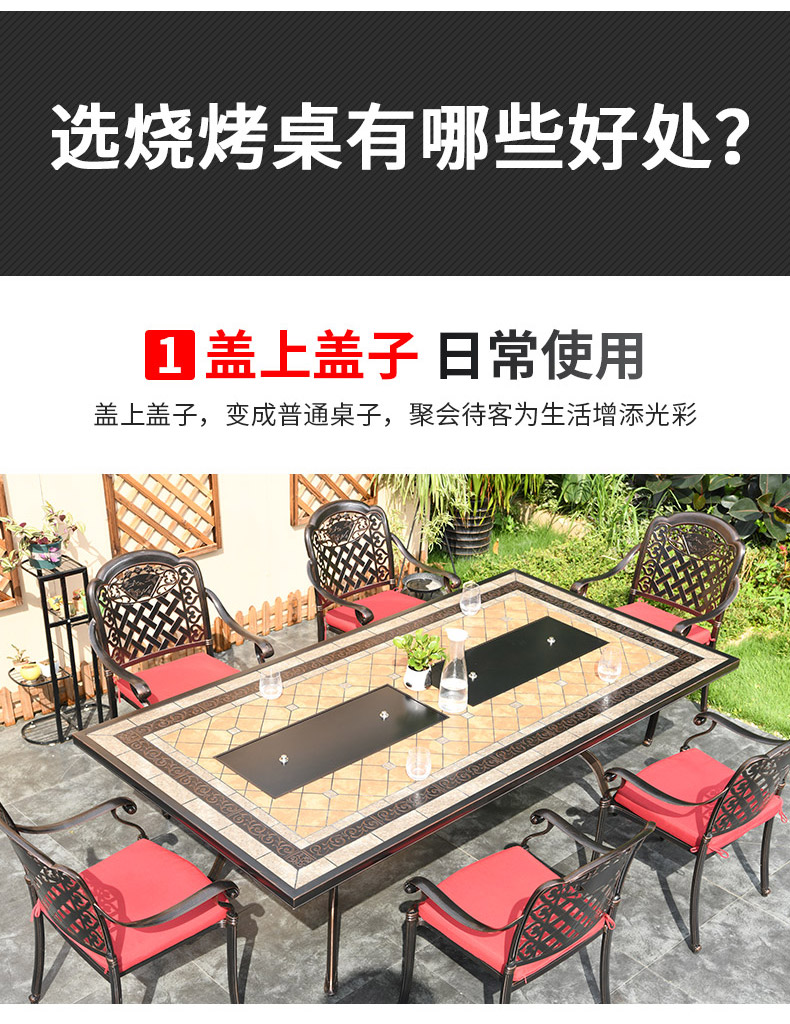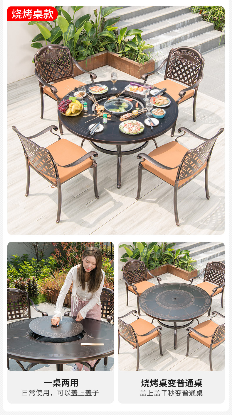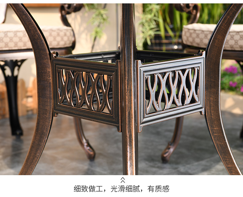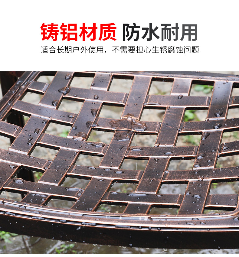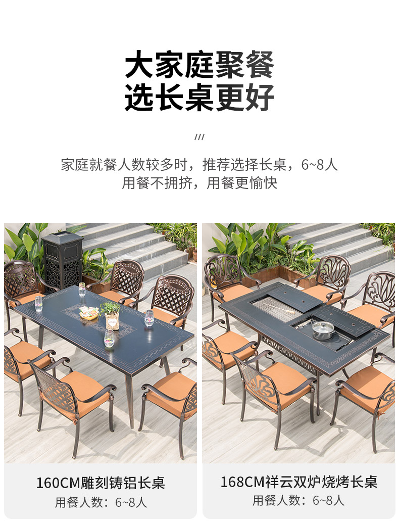 产品简介:藤朝防雨户外铸铝桌椅烧烤组合休闲庭院花园别墅露天室外耐用长桌...
