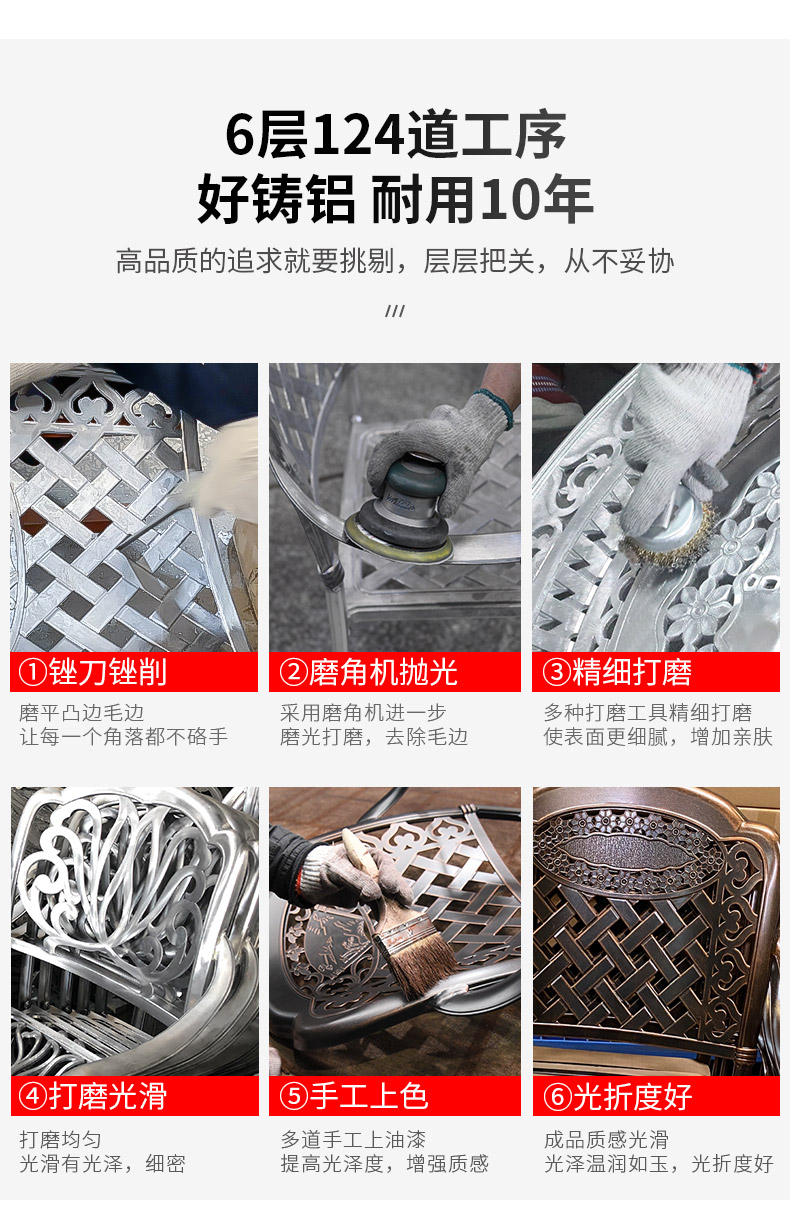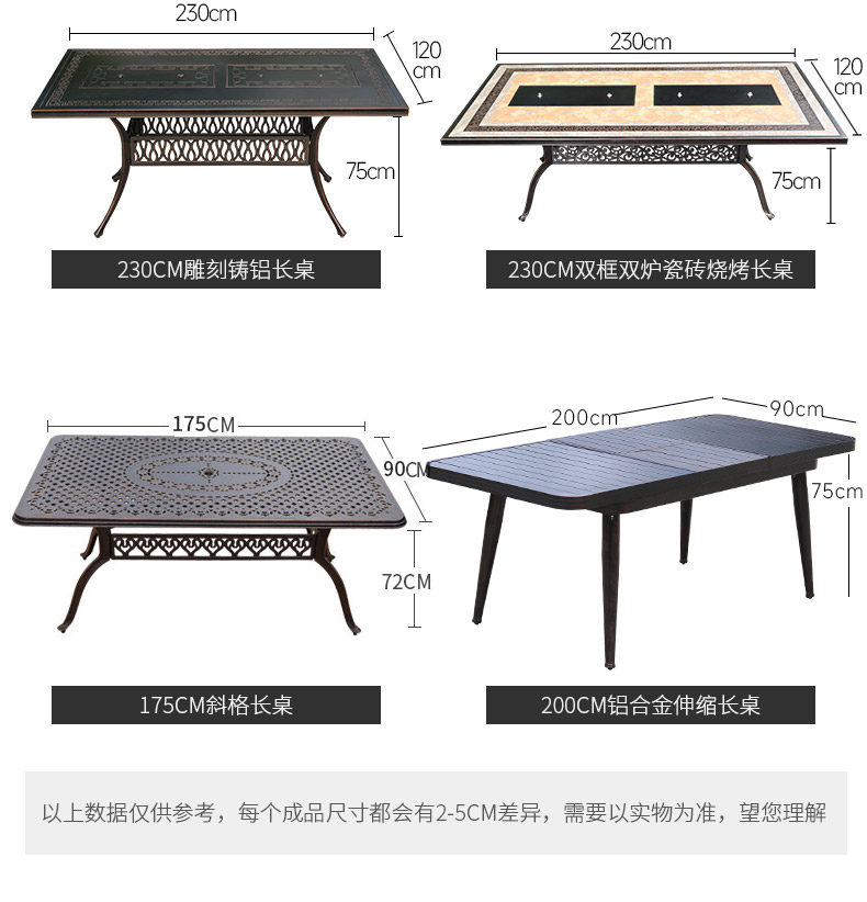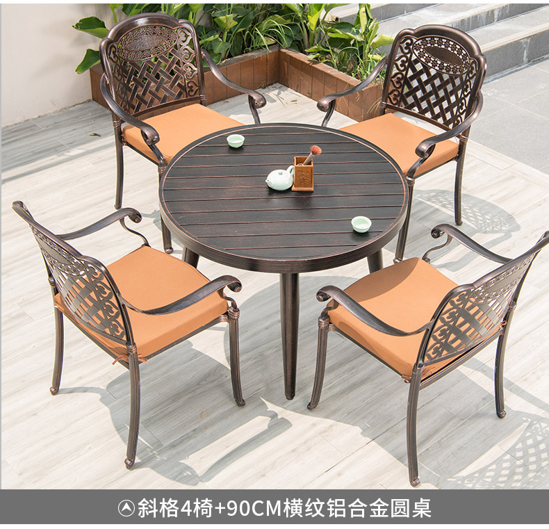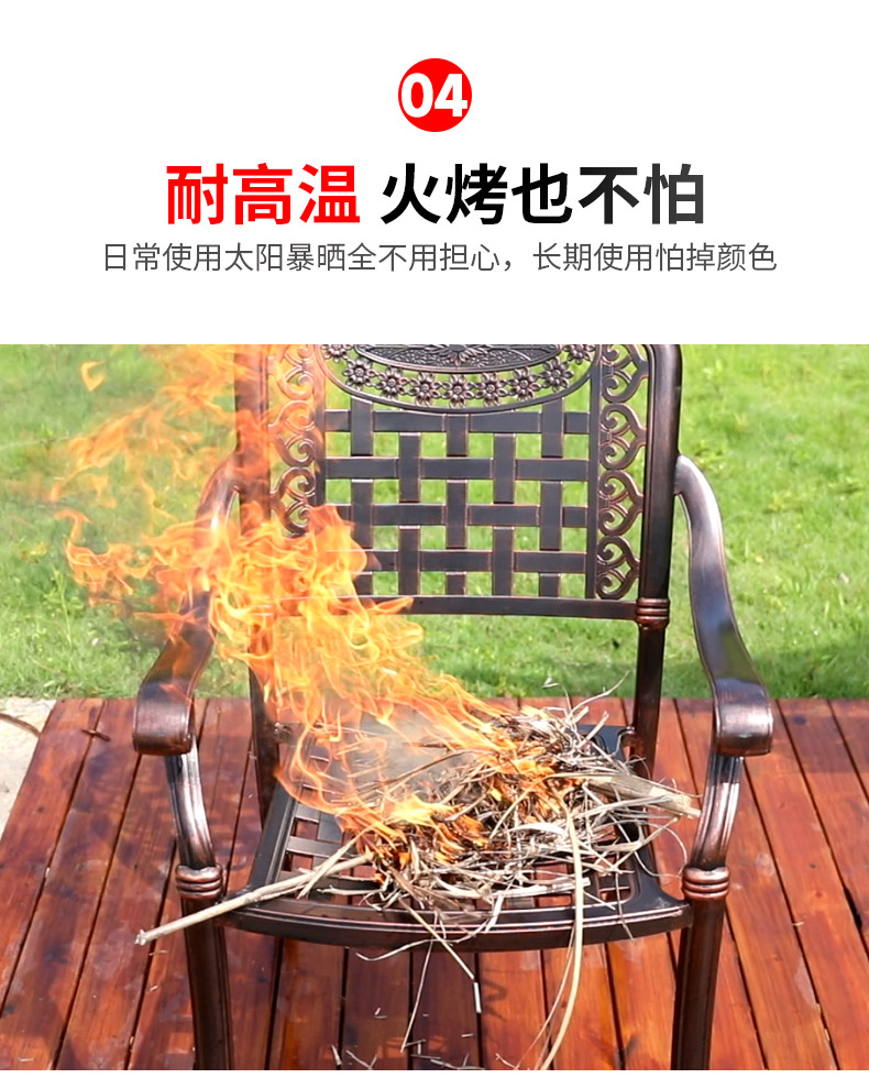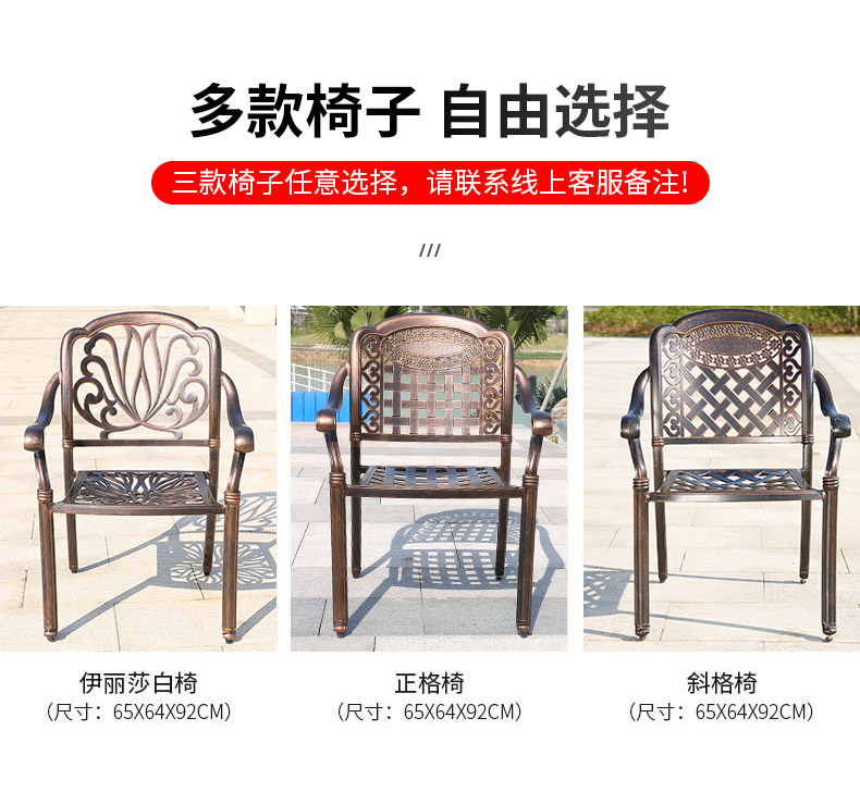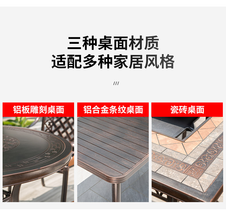 产品简介:藤朝防雨户外铸铝桌椅烧烤组合休闲庭院花园别墅露天室外耐用长桌...
