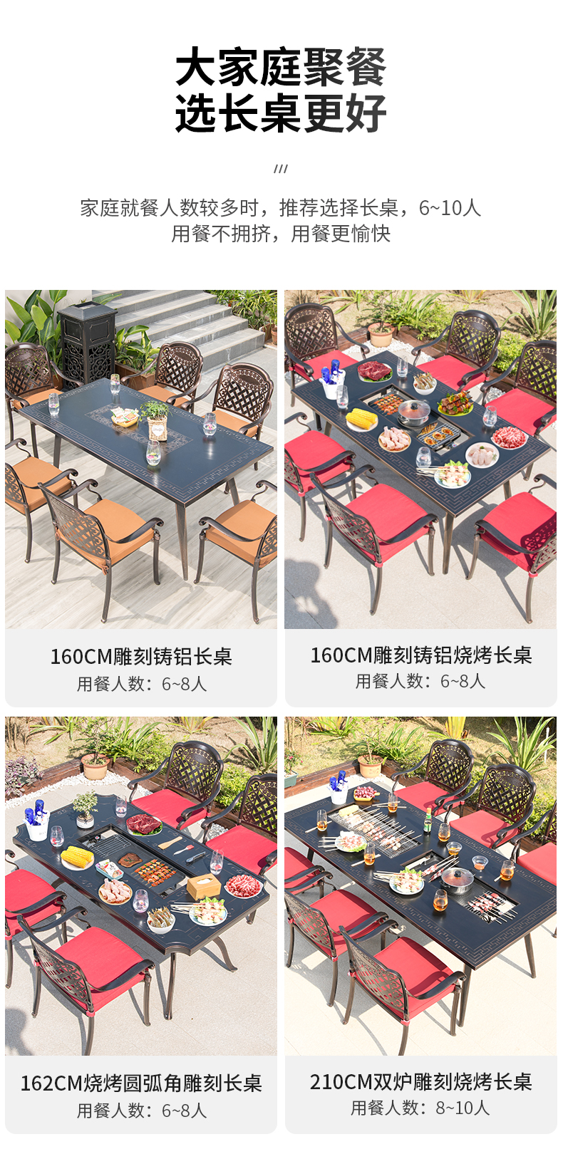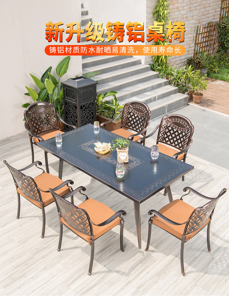 产品简介:藤朝户外长桌铸铝桌椅烧烤组合露天台室外两用型别墅花园庭院桌椅...