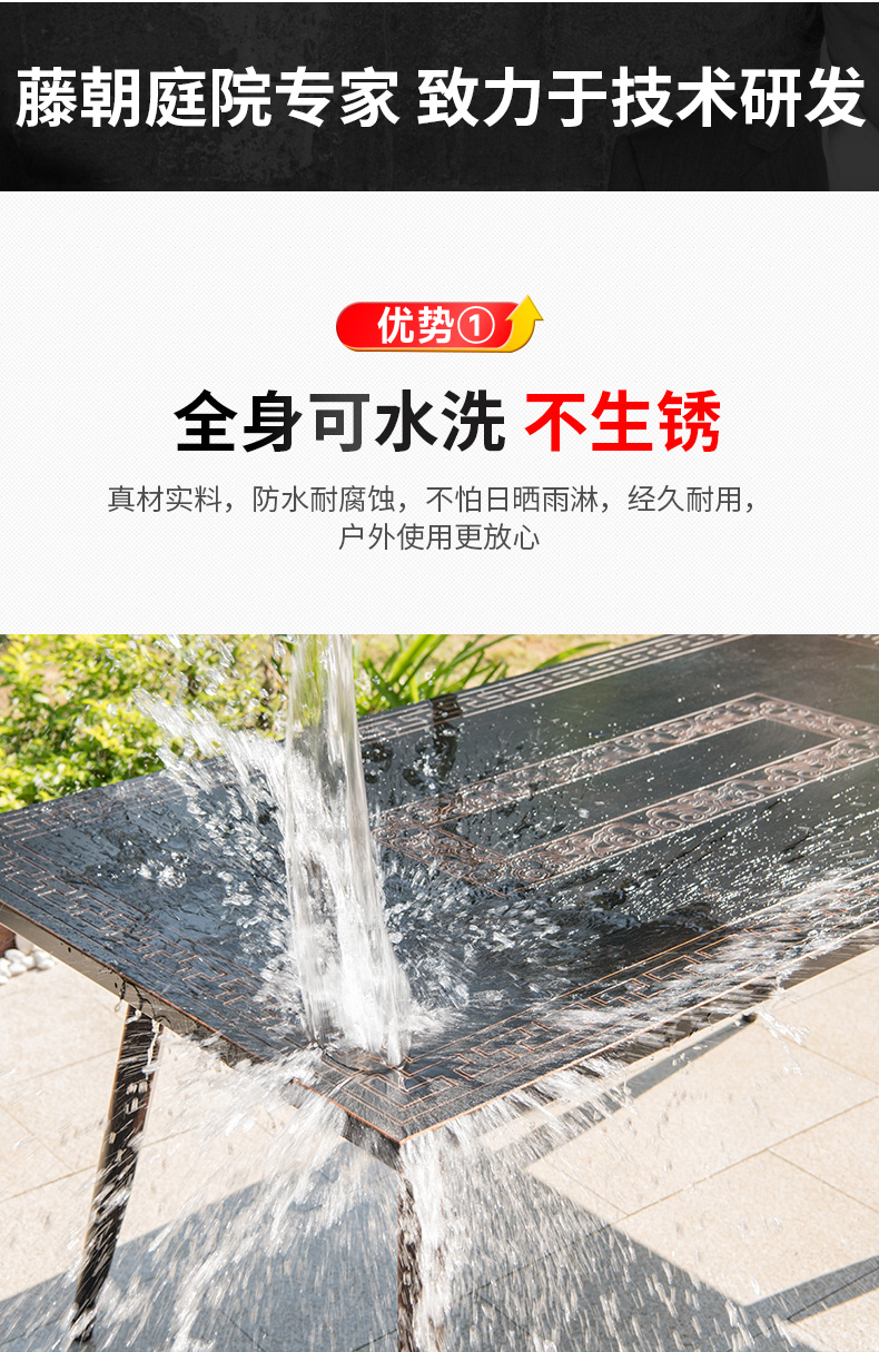 藤朝防雨户外铸铝桌椅烧烤组合休闲庭院花园别墅露天室外耐用长桌