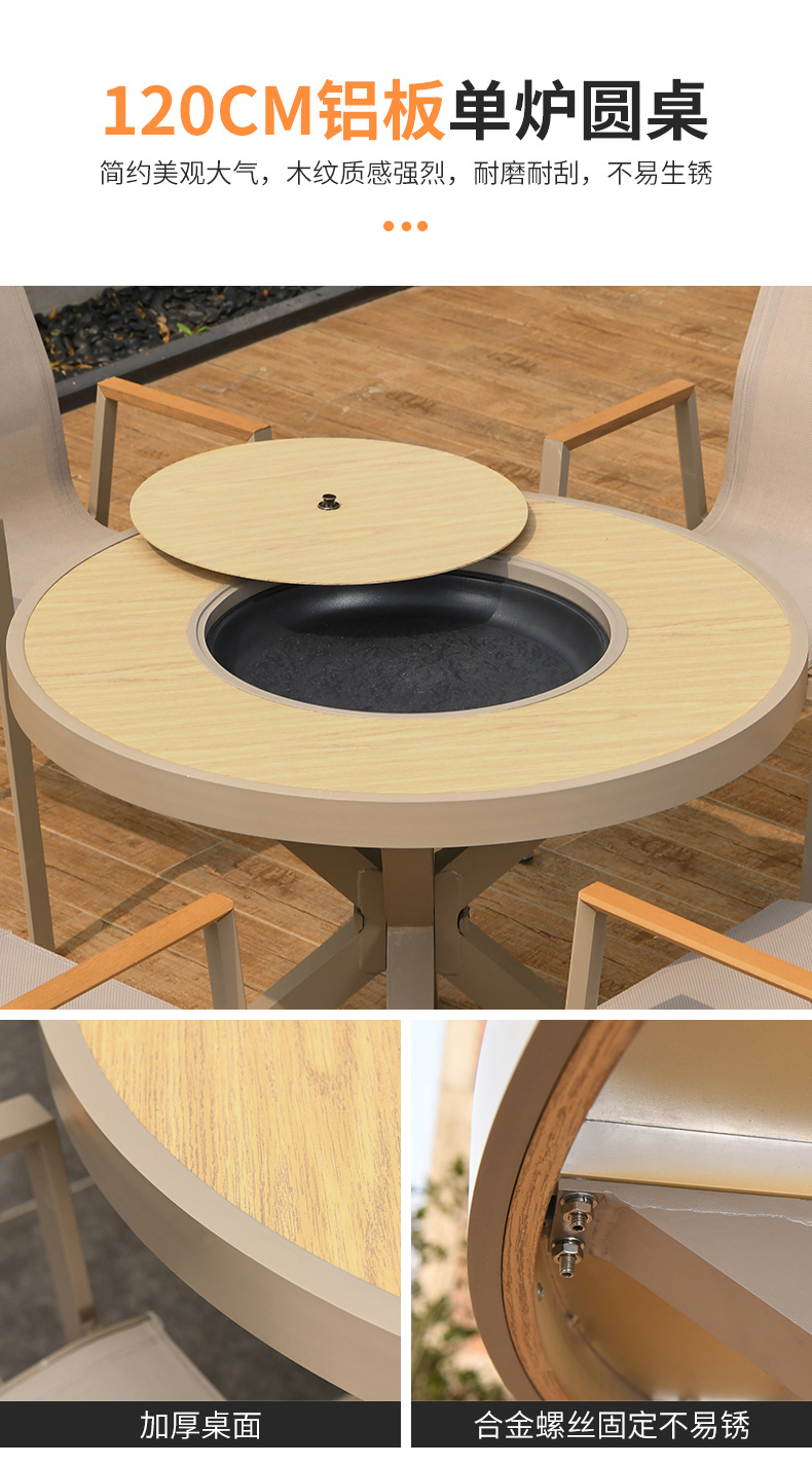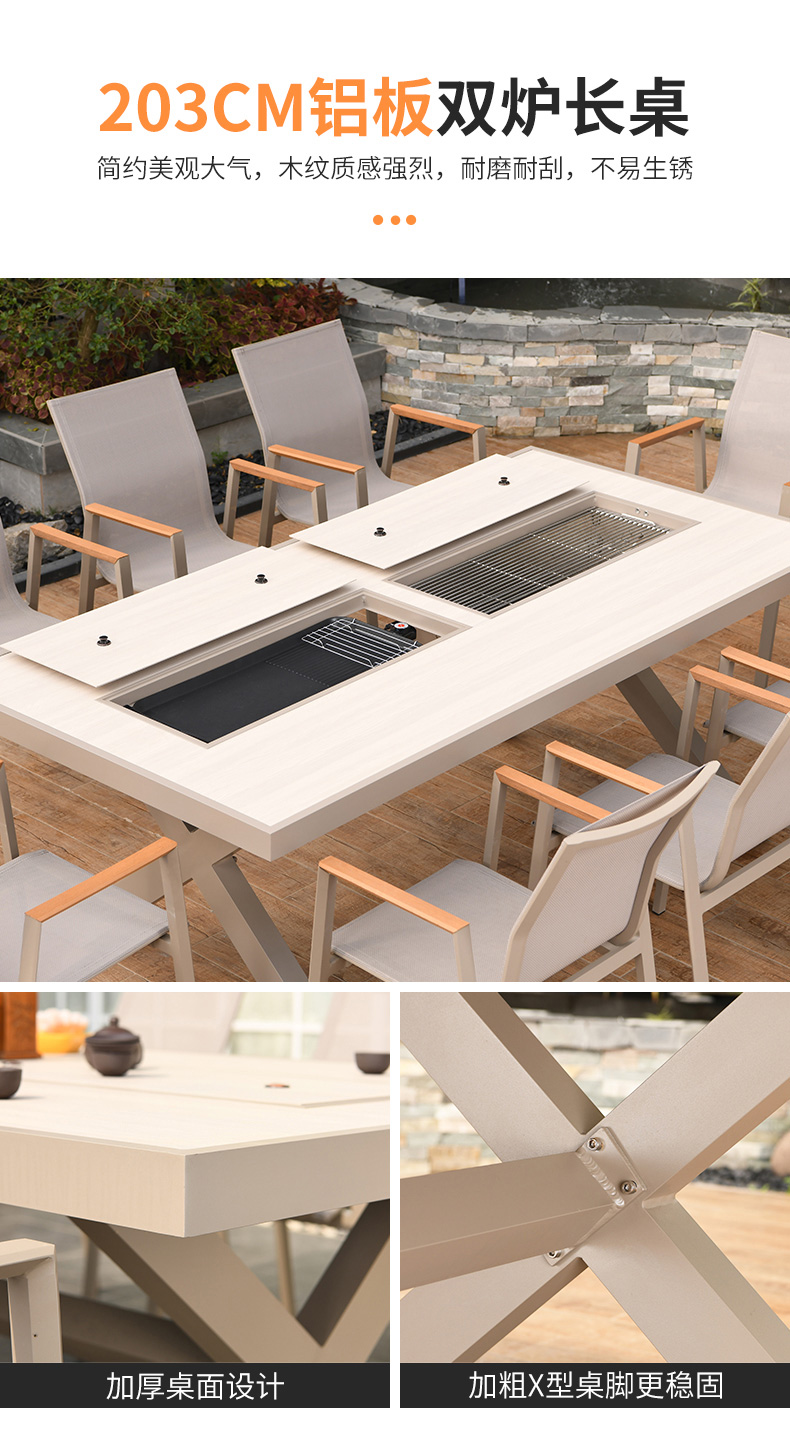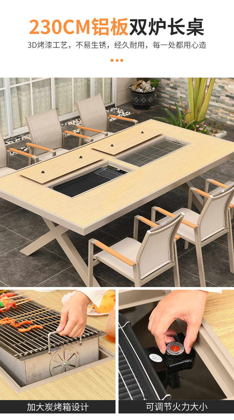 产品简介:藤朝中式庭院烧烤桌椅户外铝合金碳烤两用桌椅家用室外电烤长桌椅...