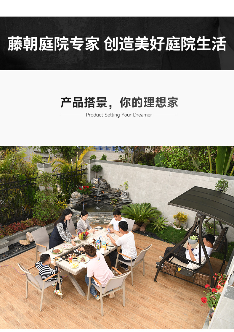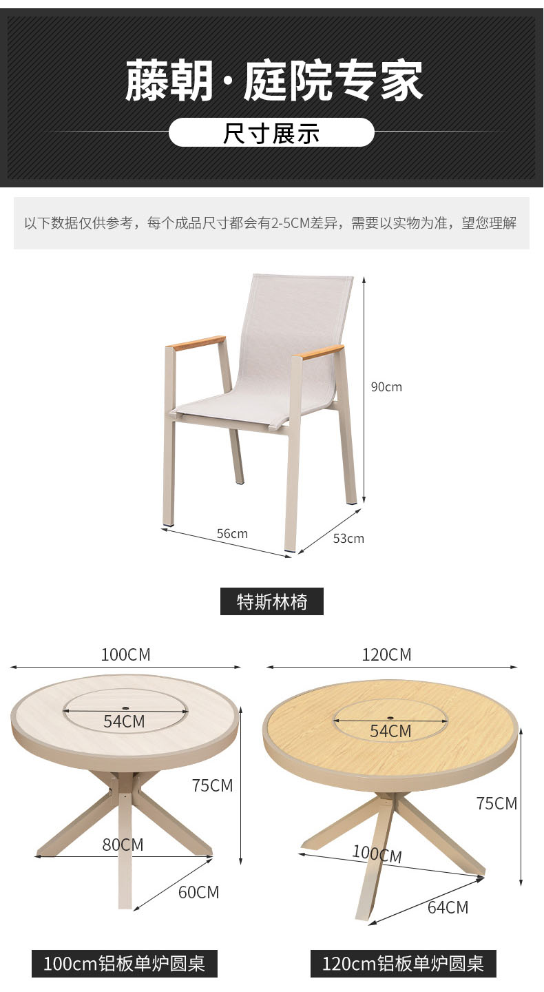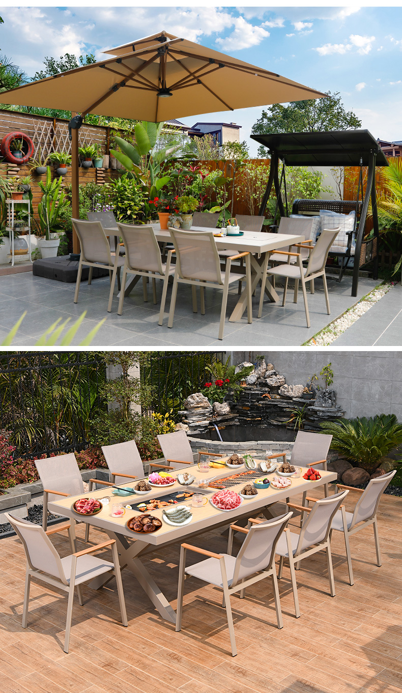 产品简介:藤朝中式庭院烧烤桌椅户外铝合金碳烤两用桌椅家用室外电烤长桌椅...