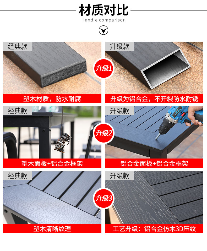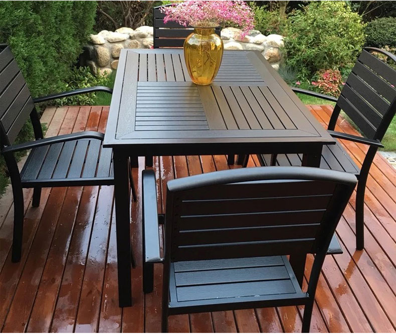 产品简介:藤朝铝合金户外庭院桌椅组合室外院子露天台休闲铸铝花园塑木桌椅...