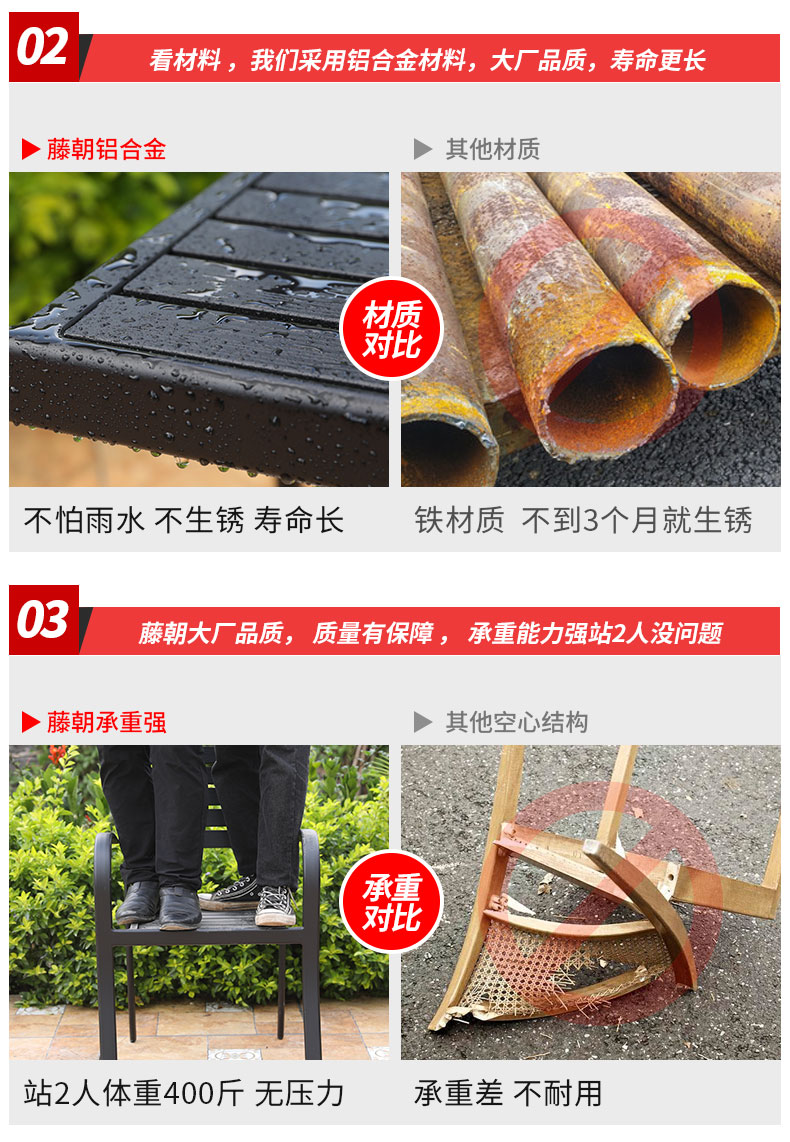 藤朝户外庭院桌椅铝合金伸缩桌椅