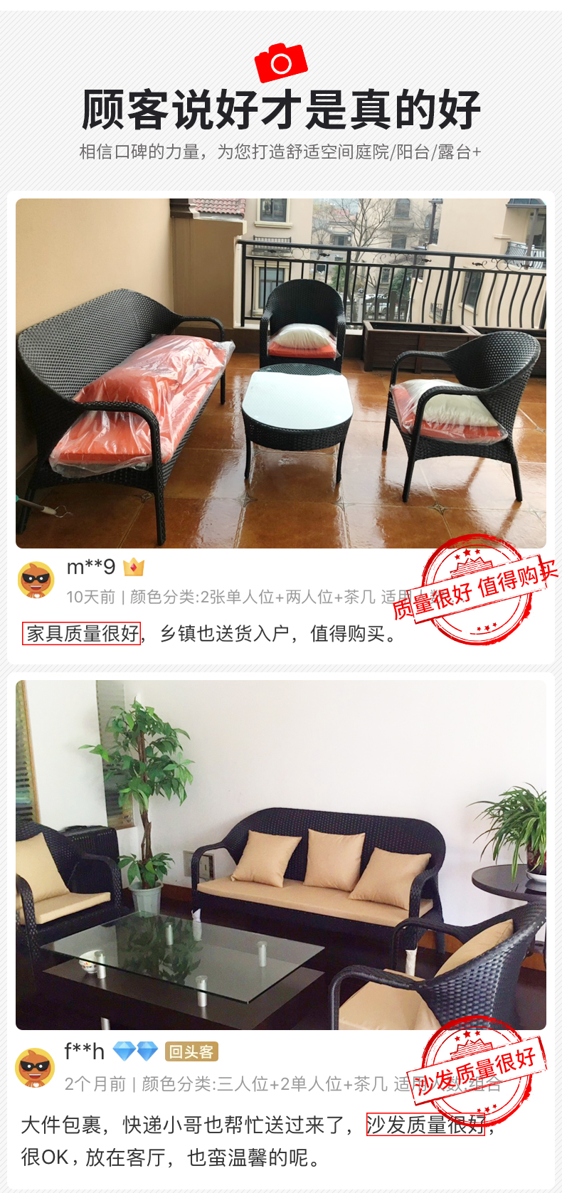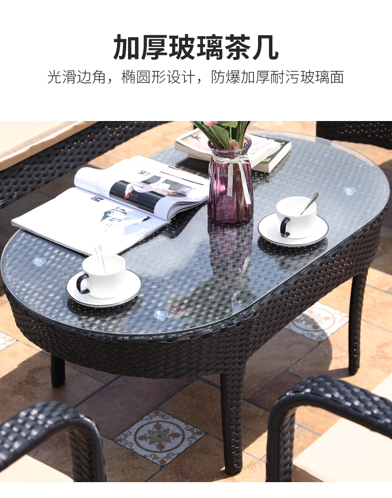 产品简介:相信很多小伙伴在装修自家庭院的时候,一定都设想过这样的场景:种满了各种花草的小院子,你躺在院子里的沙发上,一缕阳光从墙外伸进来,你半眯着眼一边抚摸着小猫咪,一边听着今天的新闻,真的好惬意对吧。这款庭院藤编沙发椅,防水耐晒,舒适透气,是户外沙发的不二选择...