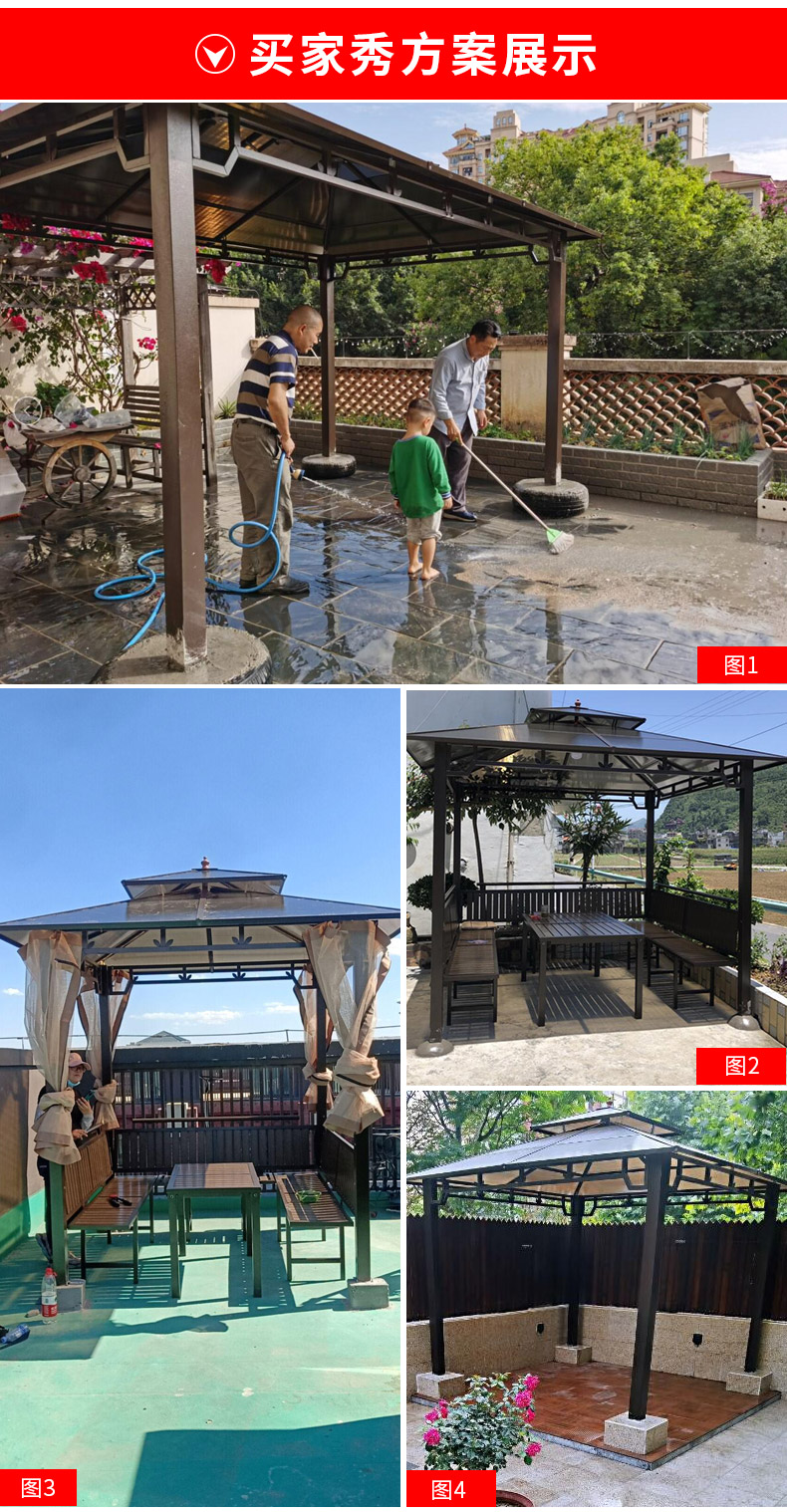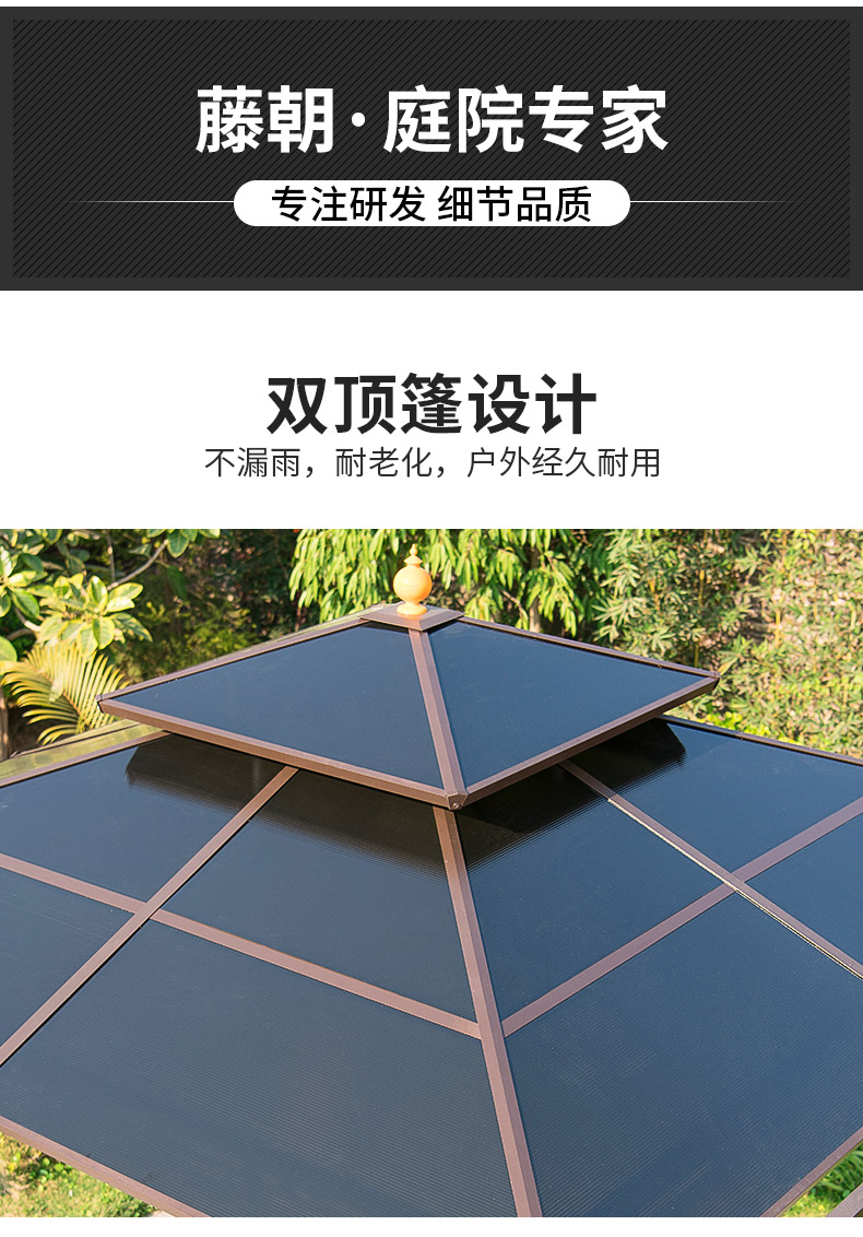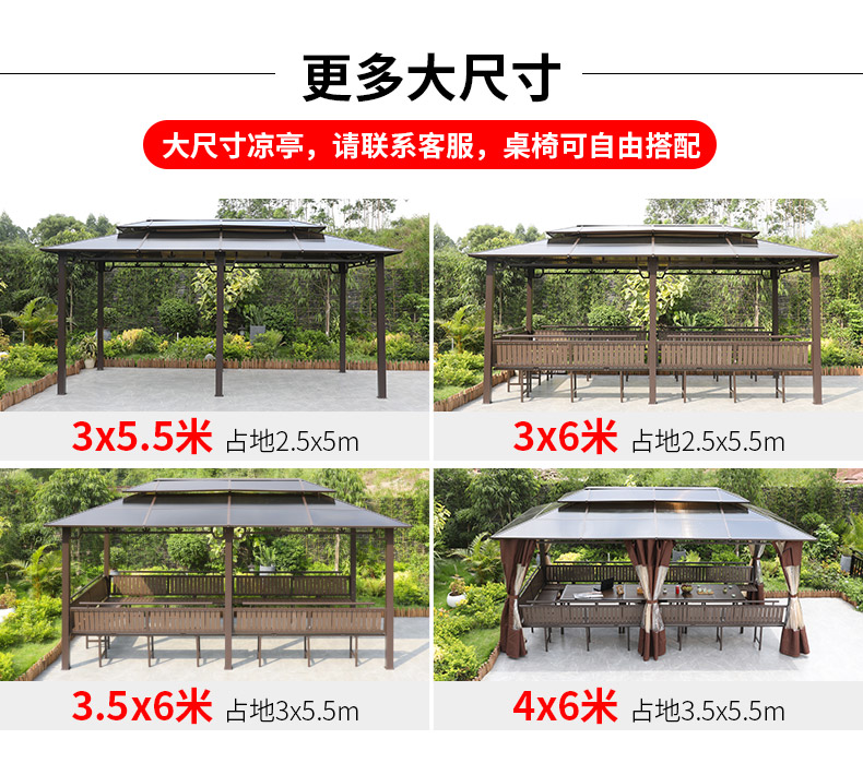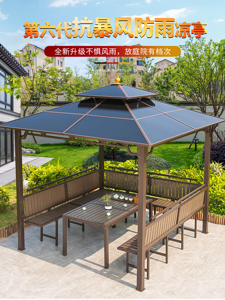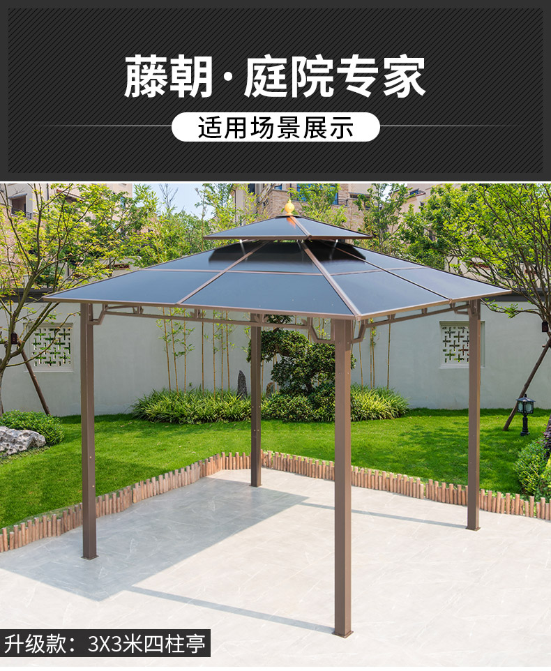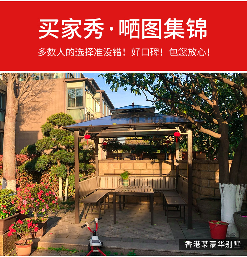 产品简介:夜晚可照明,庭院凉亭日夜两用,抗暴风雨,放庭院有档次的花园凉亭...