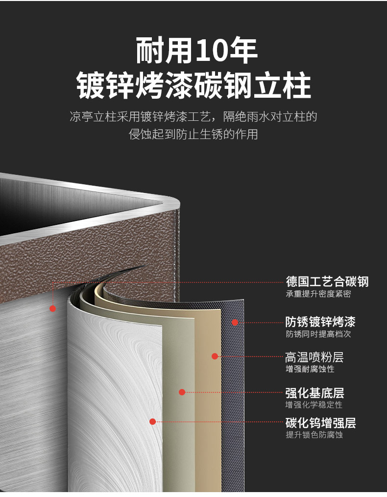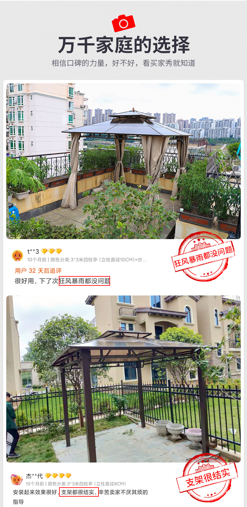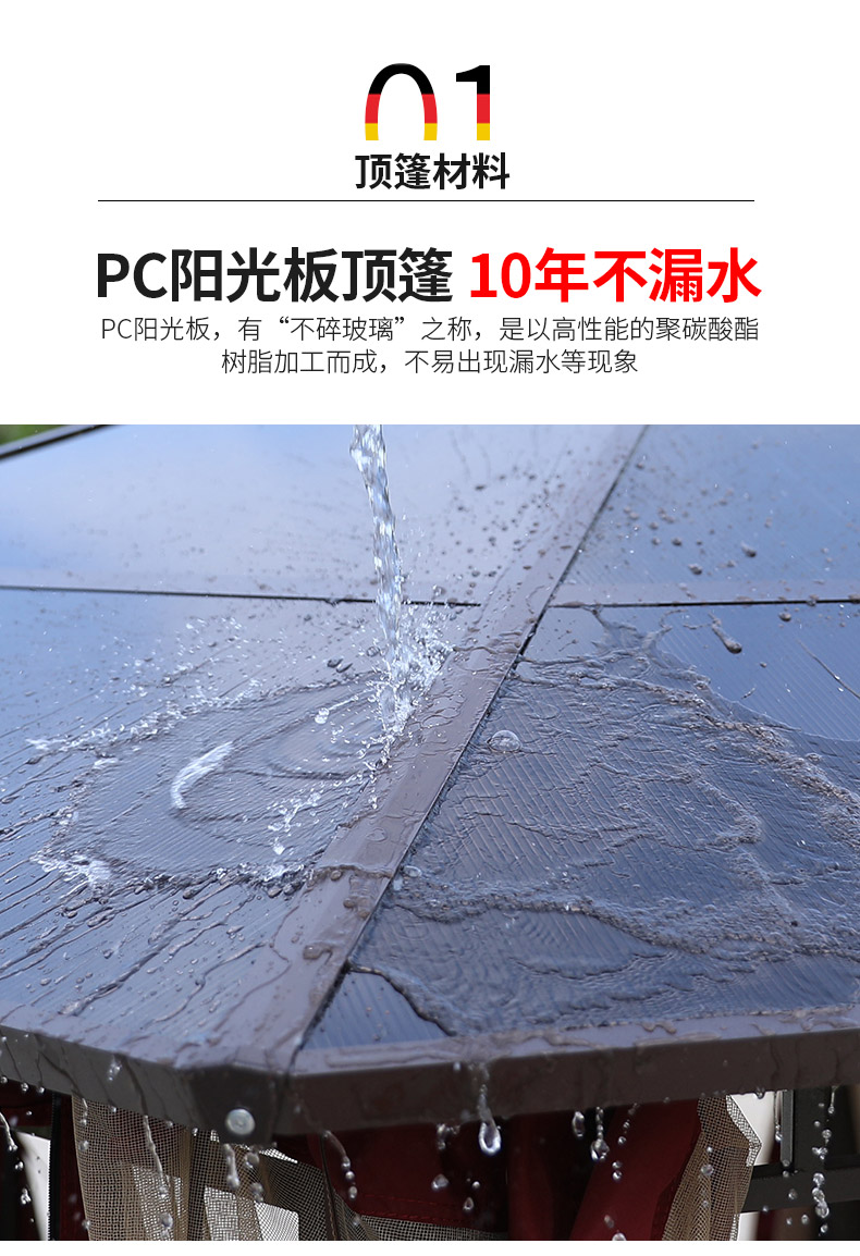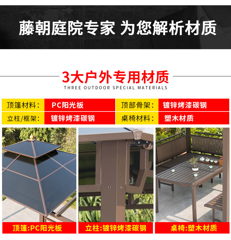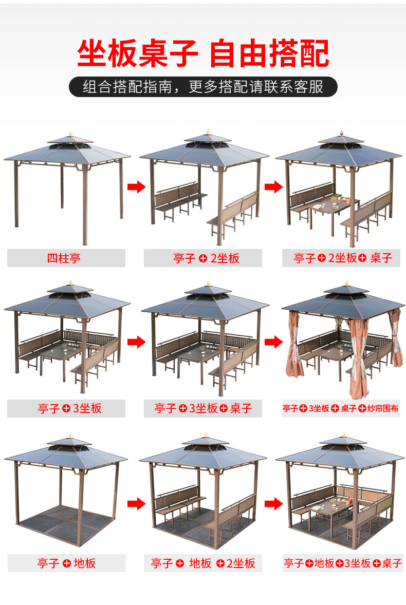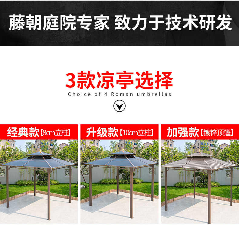 产品简介:夜晚可照明,庭院凉亭日夜两用,抗暴风雨,放庭院有档次的花园凉亭...