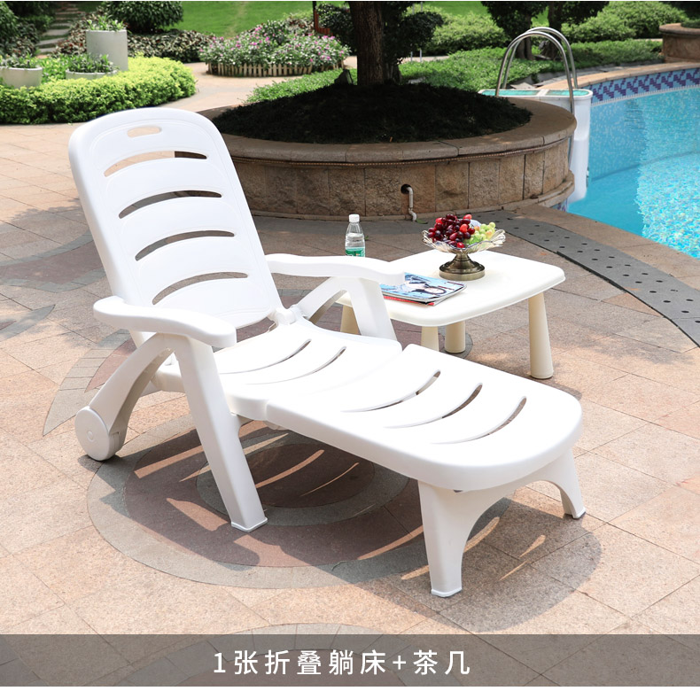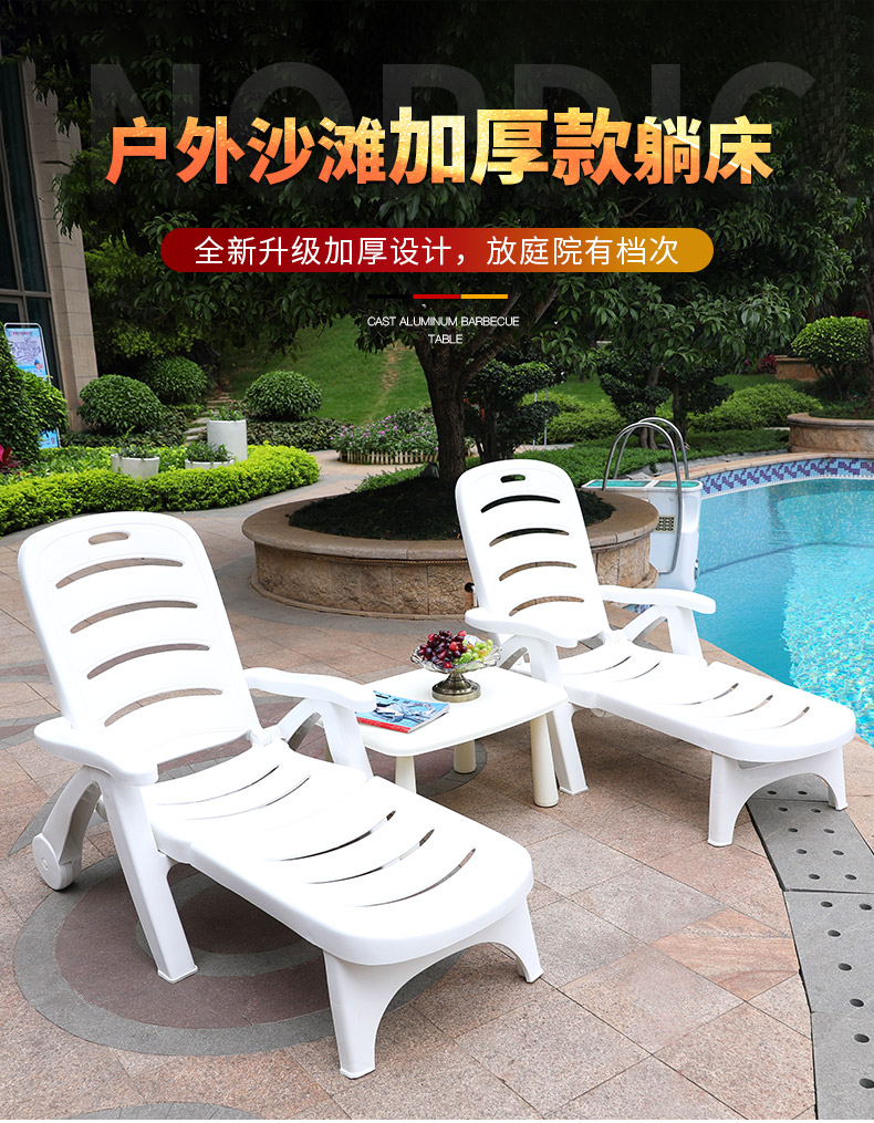 产品简介:藤朝户外游泳池躺床躺椅庭院室外露天阳台塑料折叠休闲编藤沙滩椅...