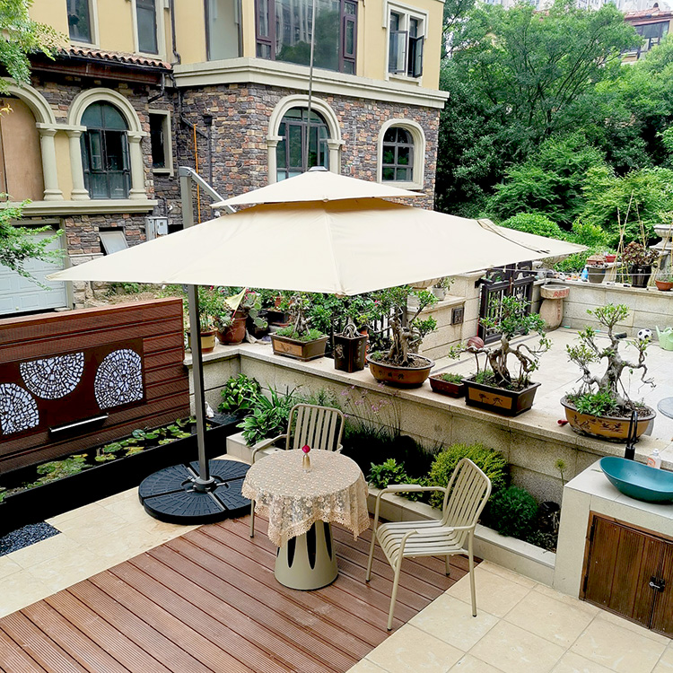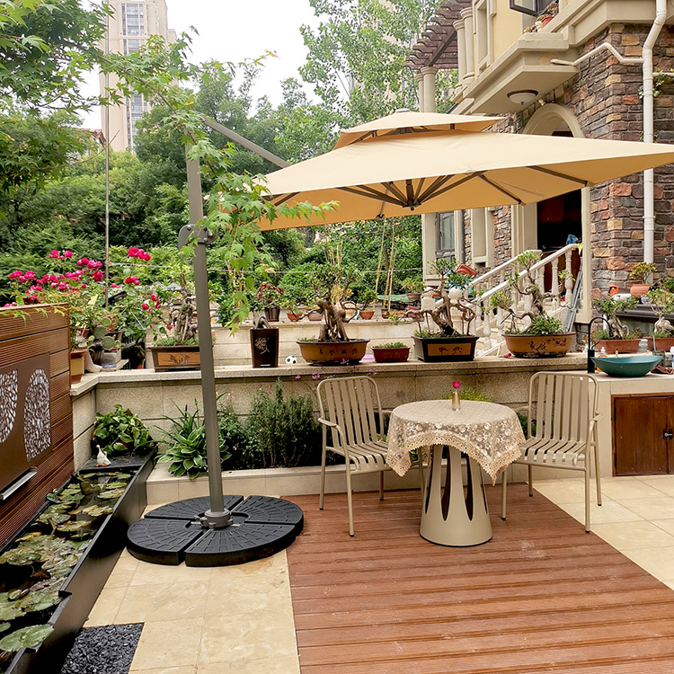 之前总觉得缺了点什么,显得院子空空旷旷的,闲暇时间会经常在院子里坐享受慢生活,所以我对院子里的每一个角落都是精心布置过的。一开始入了一套小桌椅,偶然间在咖啡店看见很多种伞就想着给家里院子也来一把是不是就完美了。果真如我所想,伞撑开加起来的一瞬间我就觉得这就是我心中完美的院子了!