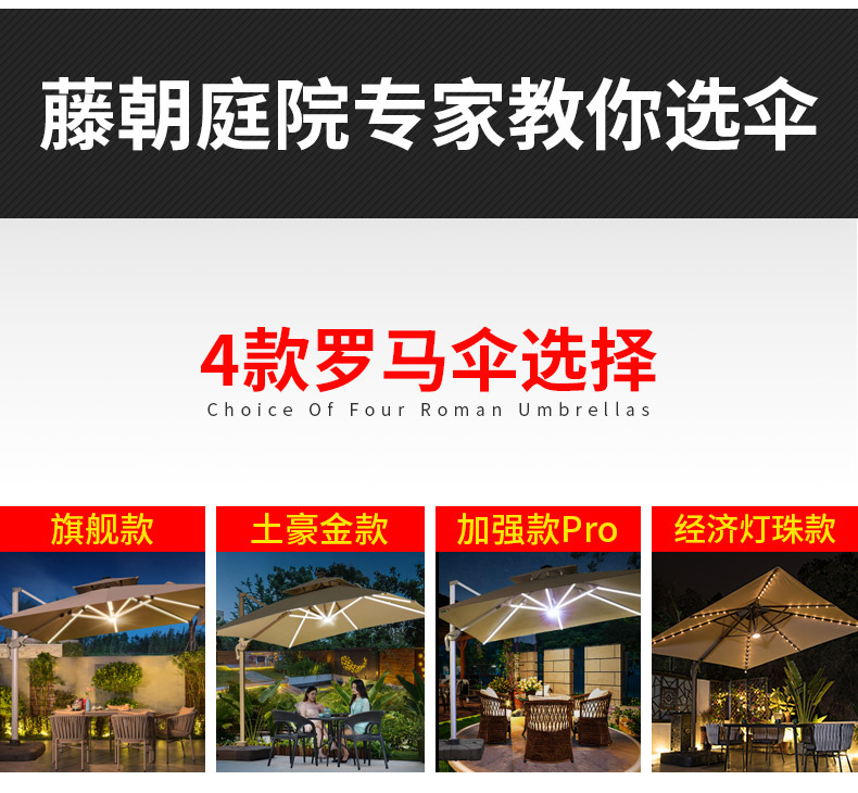 产品简介:藤朝户外伞庭院伞摆摊罗马遮阳伞...