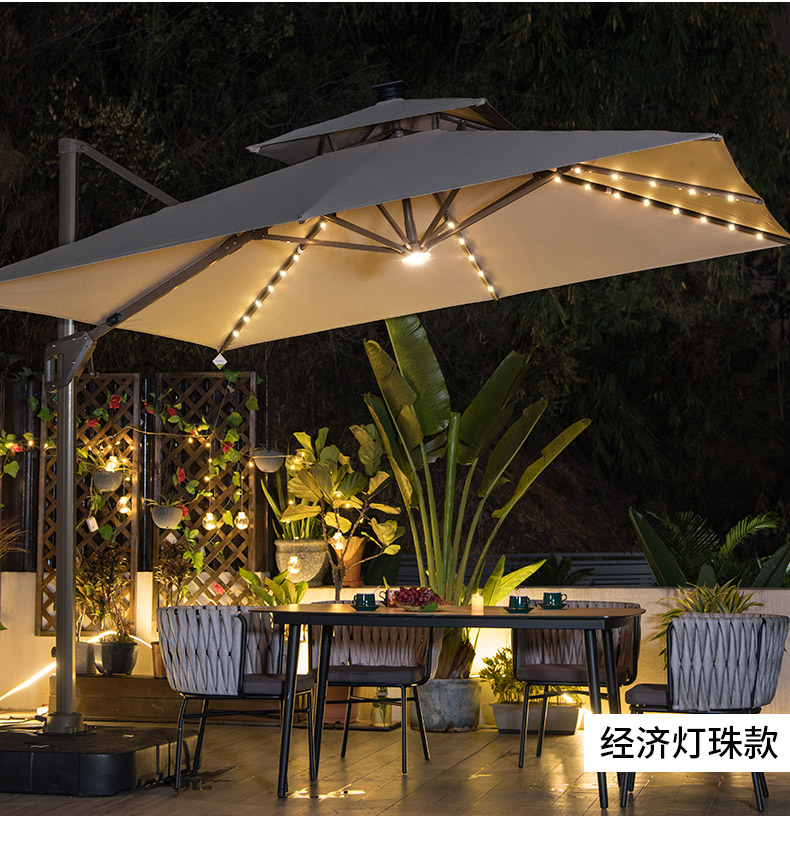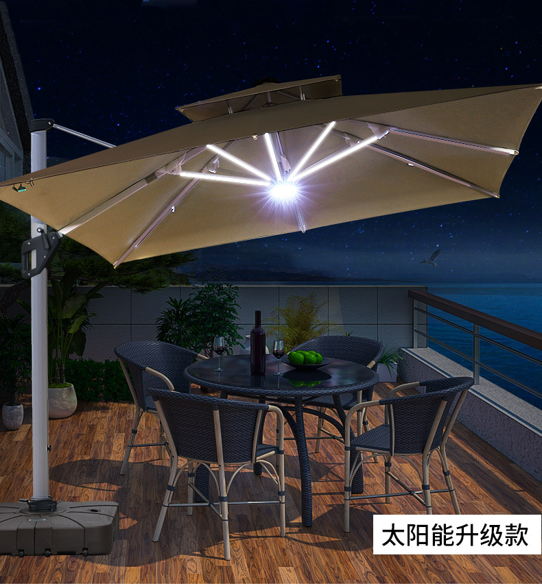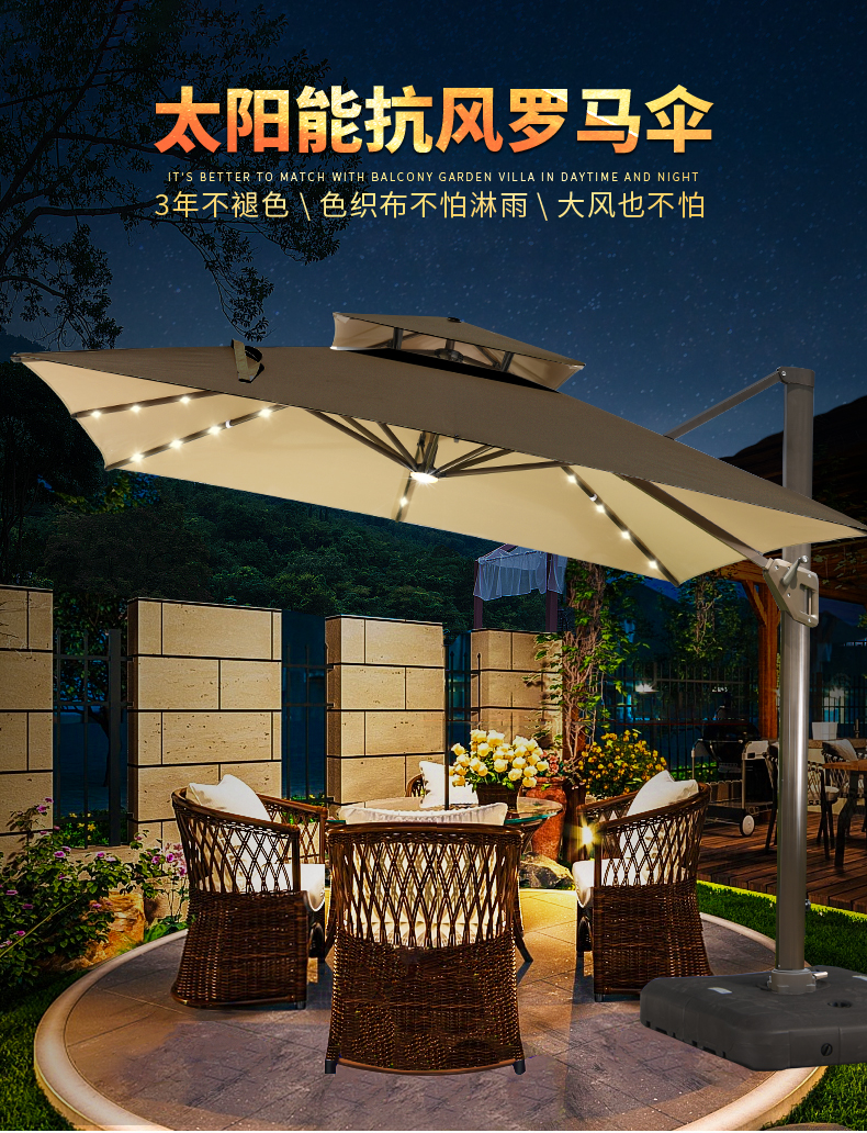 产品简介:藤朝庭院太阳能伞室外露天花园天台罗马伞家用别墅户外露台伞带灯...