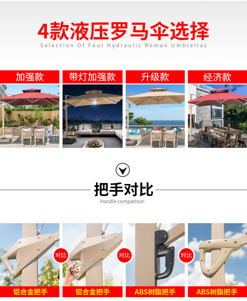 液压3秒开伞,户外抗风液压罗马遮阳伞