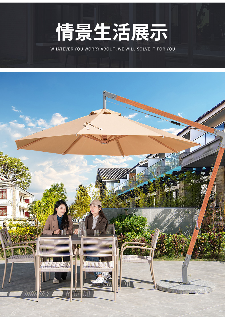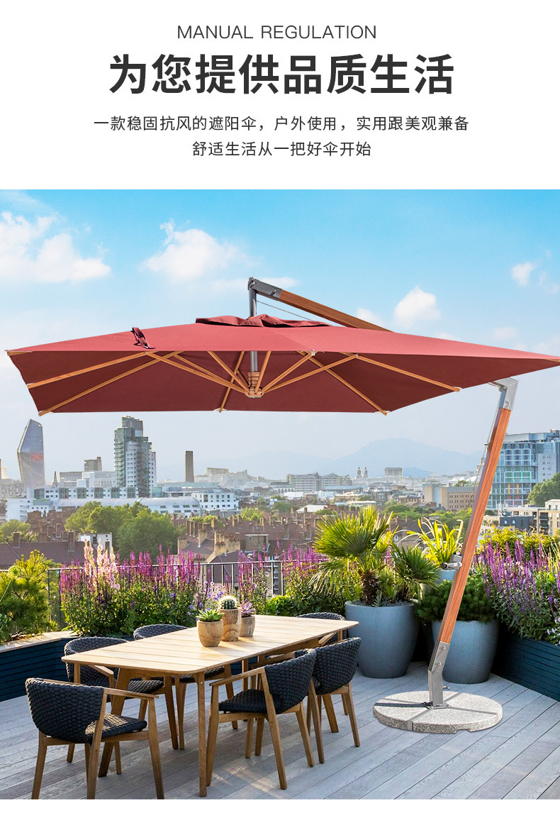 产品简介:藤朝高端铝合金罗马伞户外伞七字大伞室外遮阳伞别墅庭院大太阳伞...