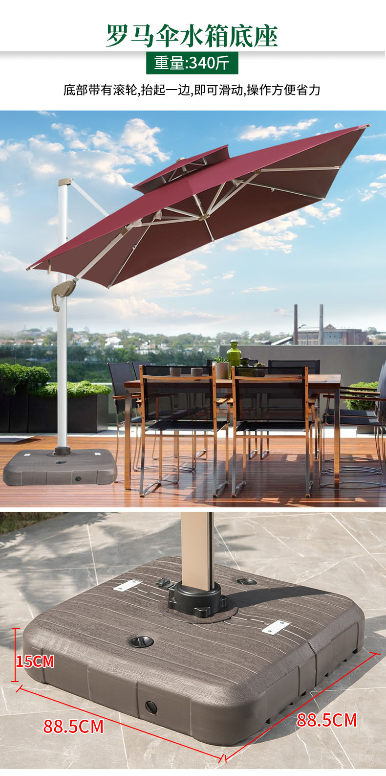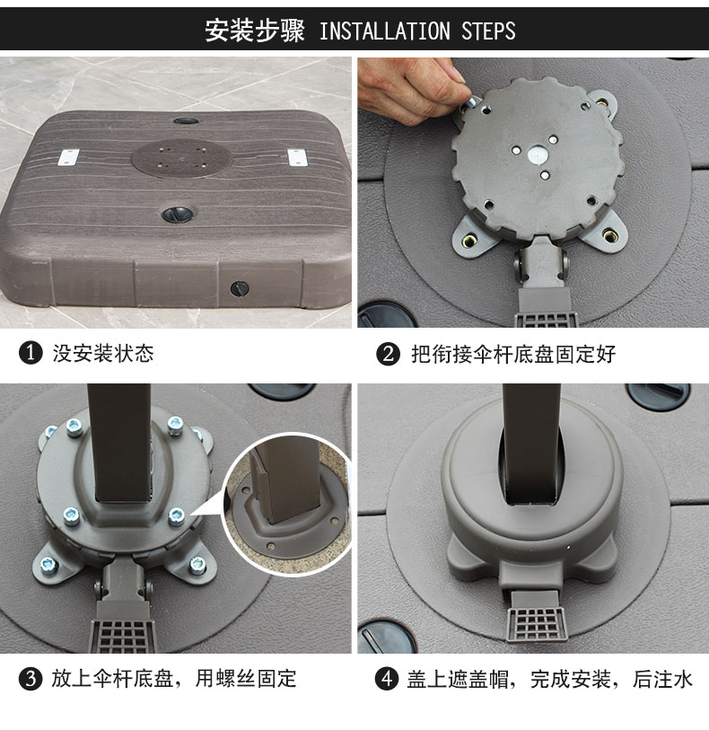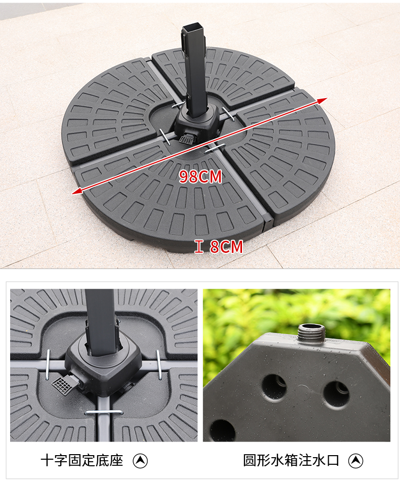 产品简介:藤朝太阳伞底座固定不倒户外遮阳伞庭院伞罗马伞地面压重注水底座...