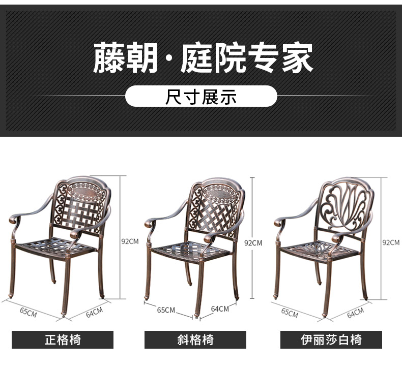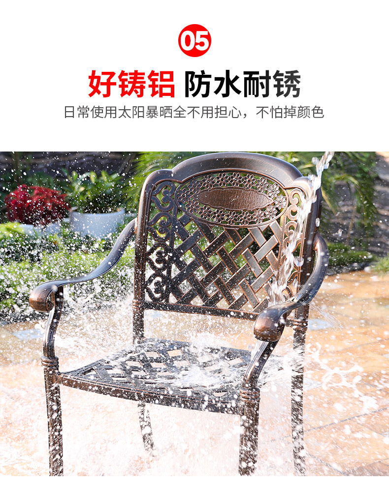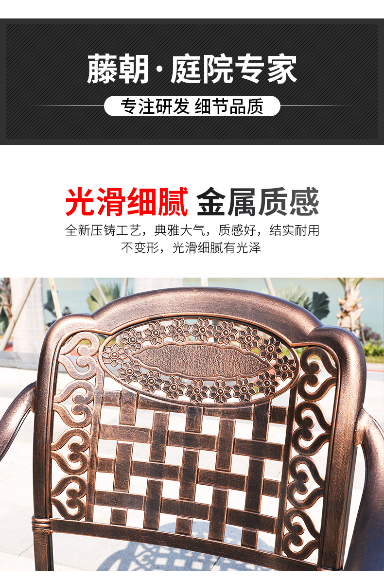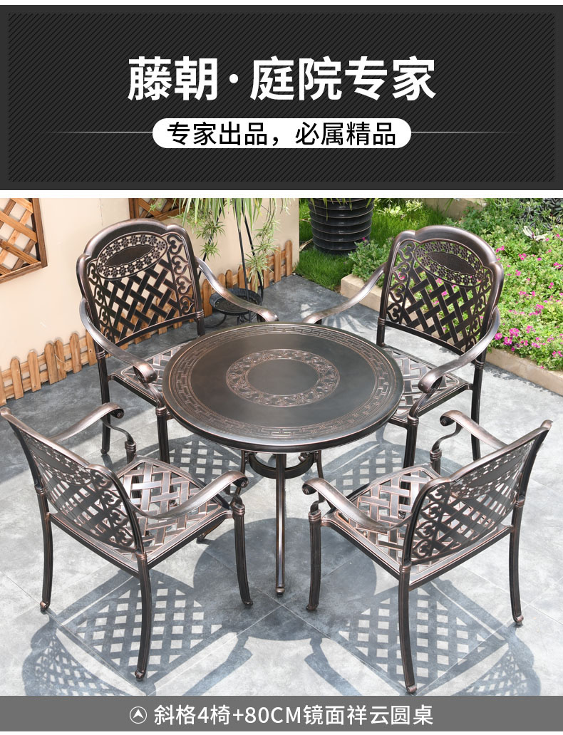 产品简介:藤朝防雨户外铸铝桌椅烧烤组合休闲庭院花园别墅露天室外耐用长桌...