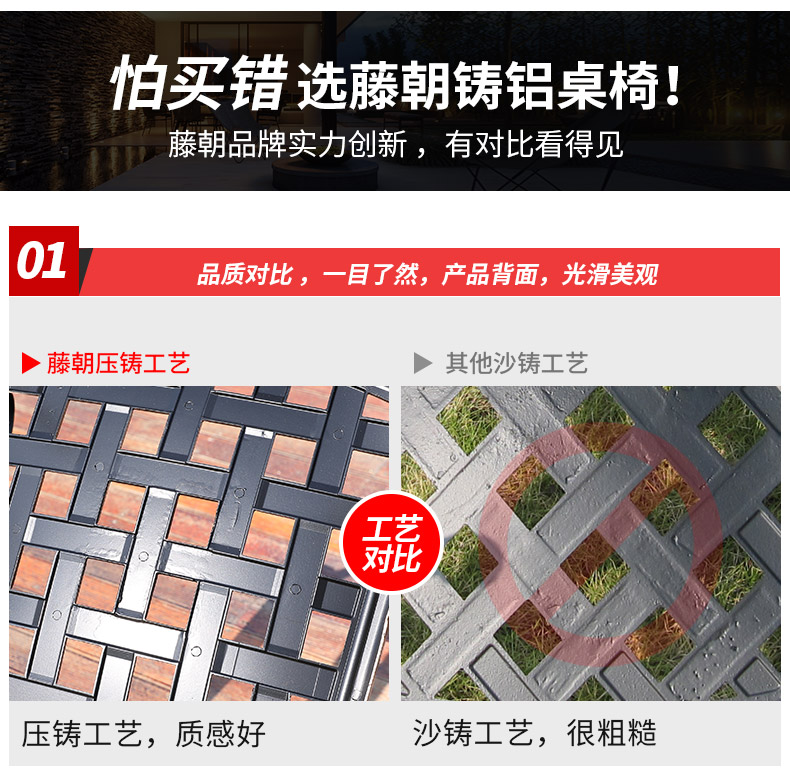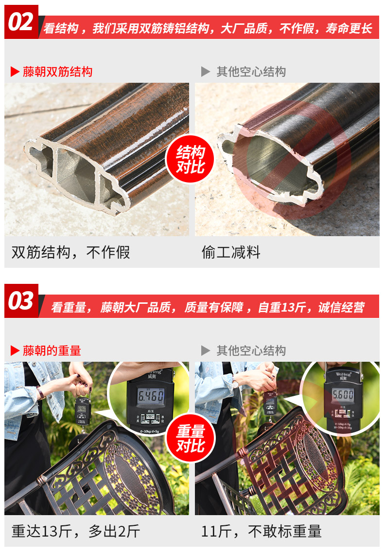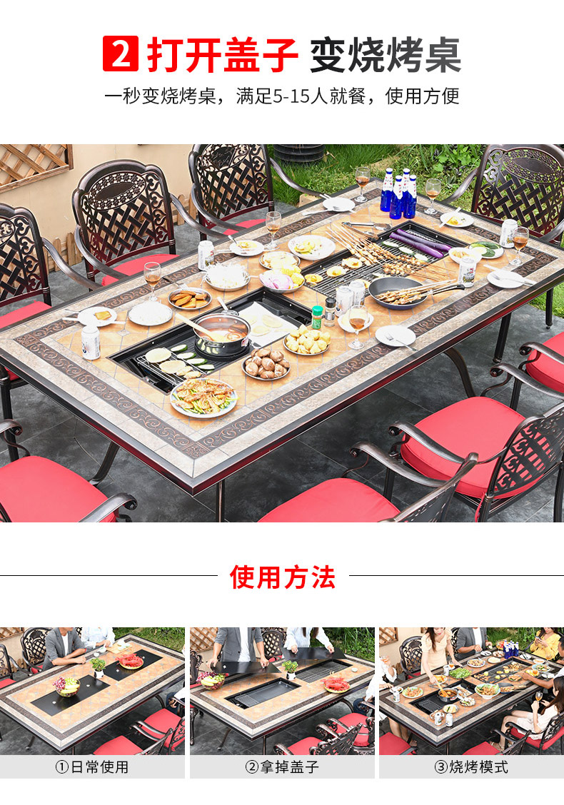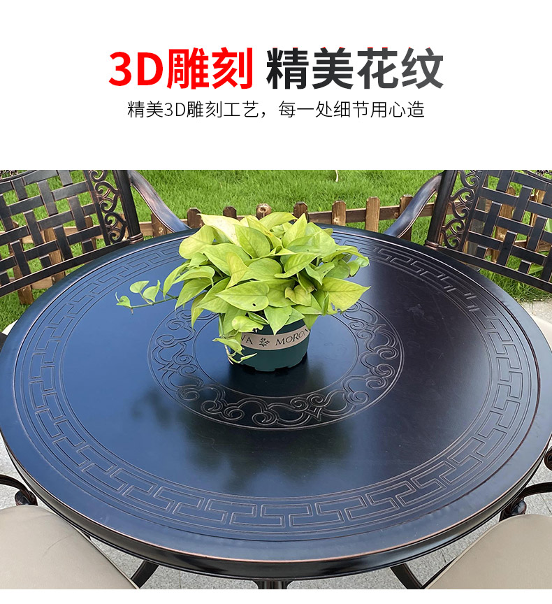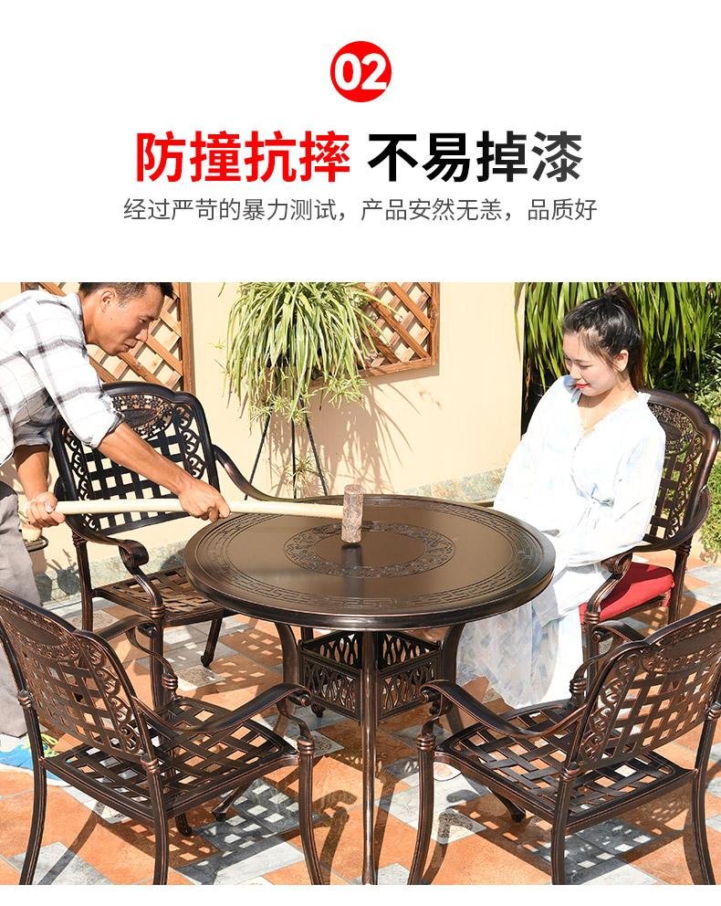 产品简介:藤朝防雨户外铸铝桌椅烧烤组合休闲庭院花园别墅露天室外耐用长桌...