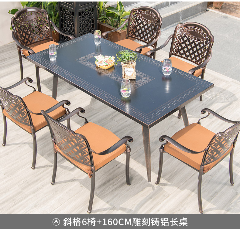 藤朝防雨户外铸铝桌椅烧烤组合休闲庭院花园别墅露天室外耐用长桌