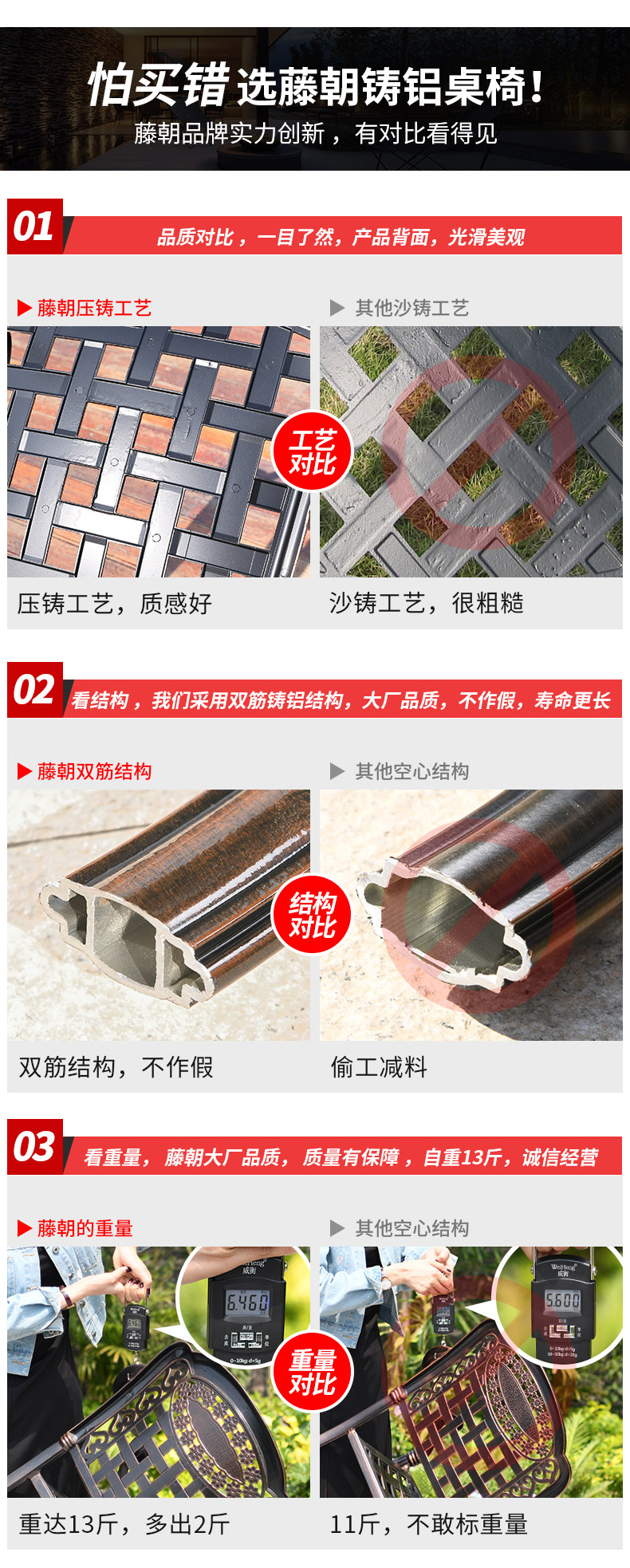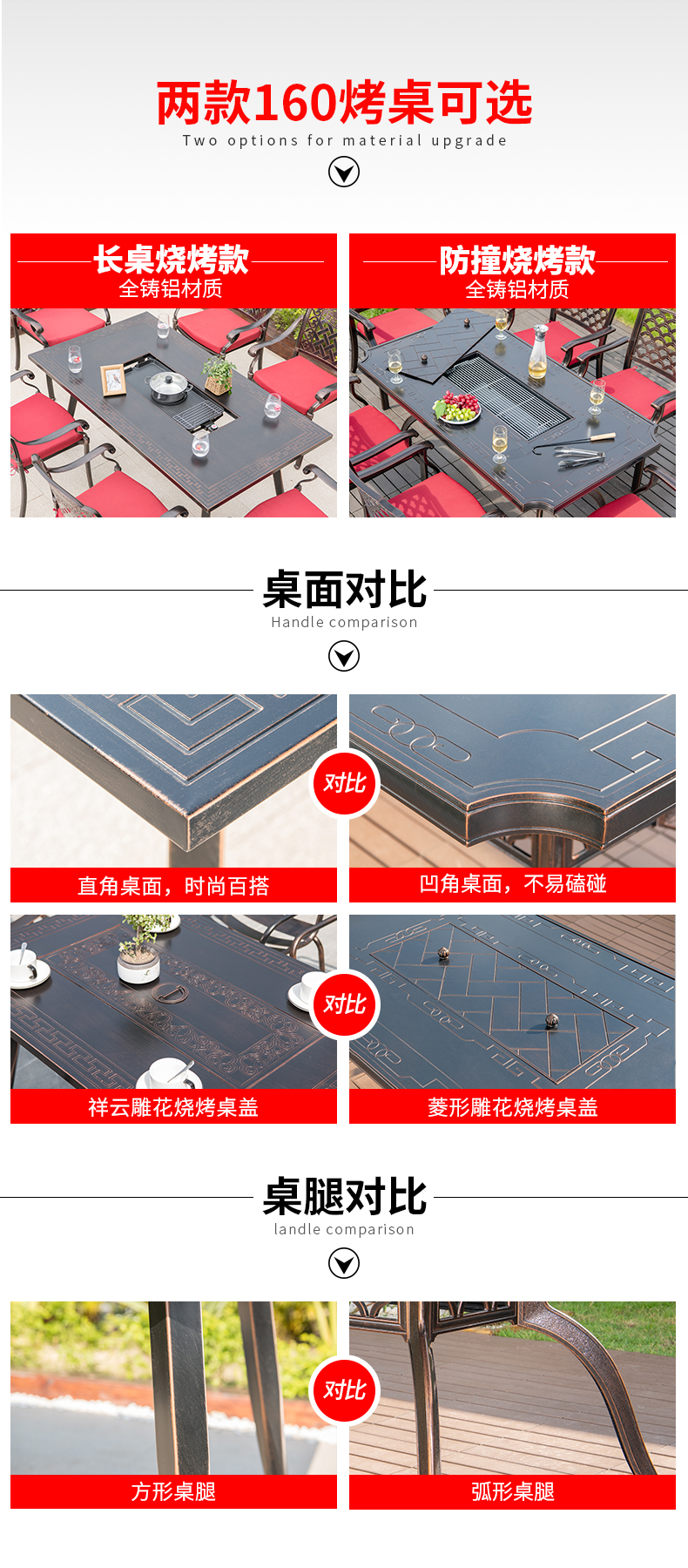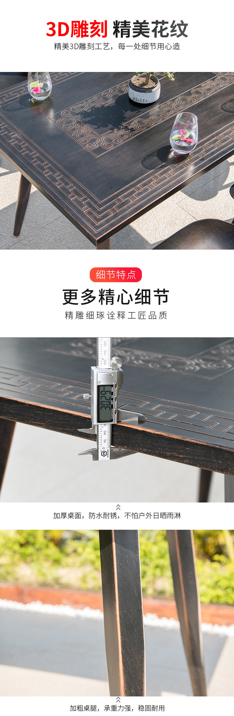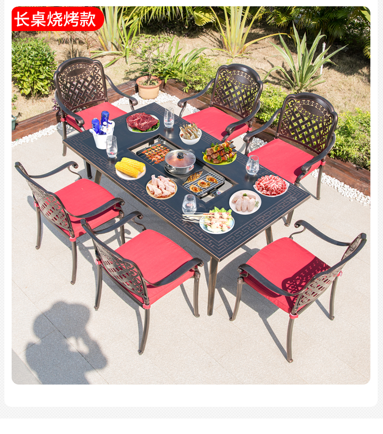 产品简介:藤朝户外长桌铸铝桌椅烧烤组合露天台室外两用型别墅花园庭院桌椅...