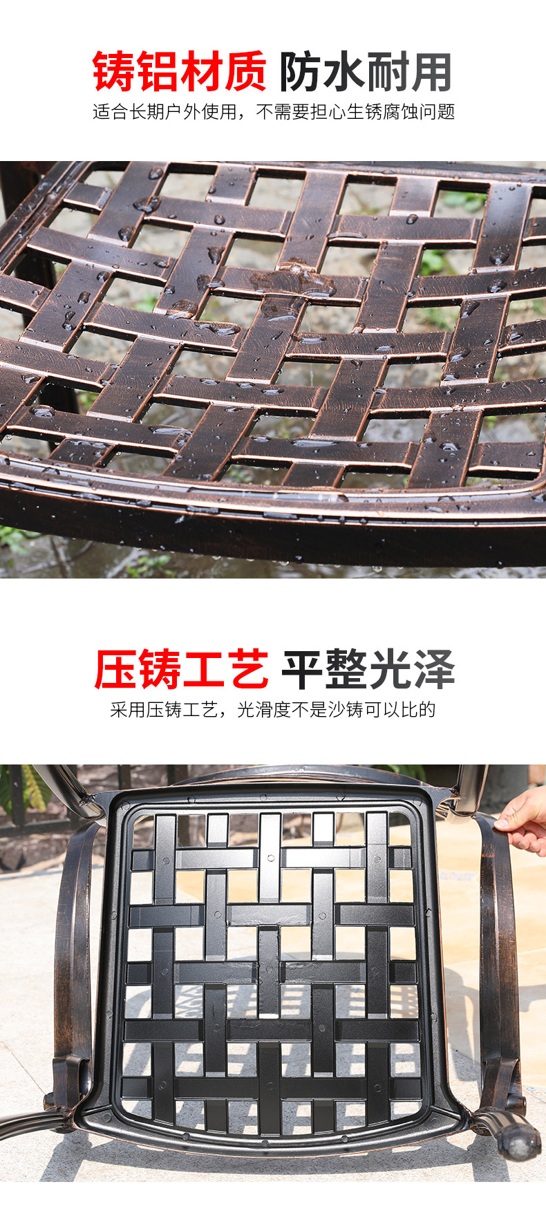藤朝防雨户外铸铝桌椅烧烤组合休闲庭院花园别墅露天室外耐用长桌