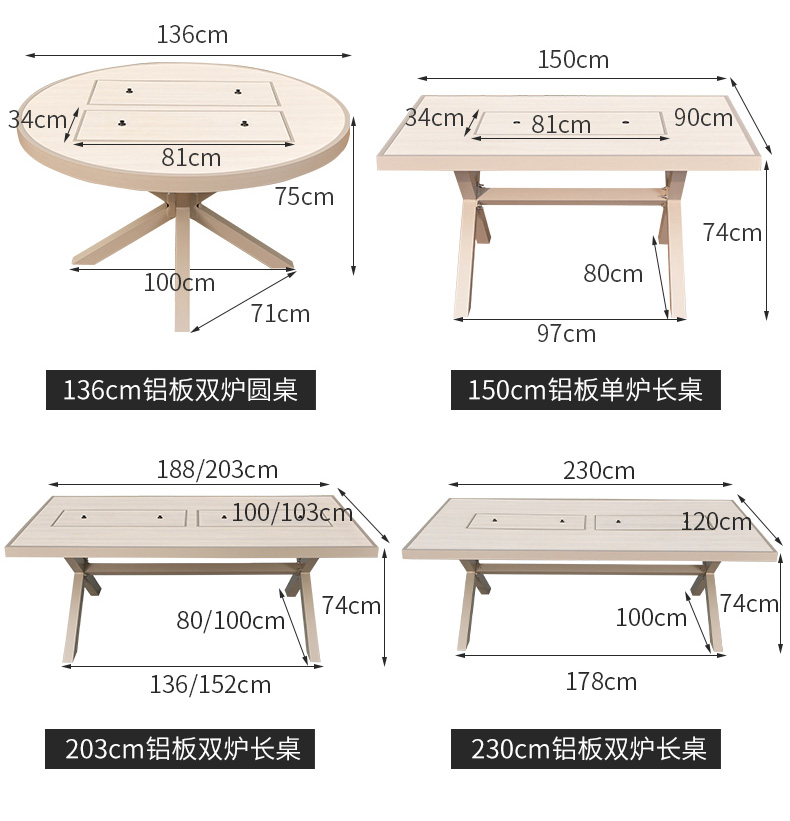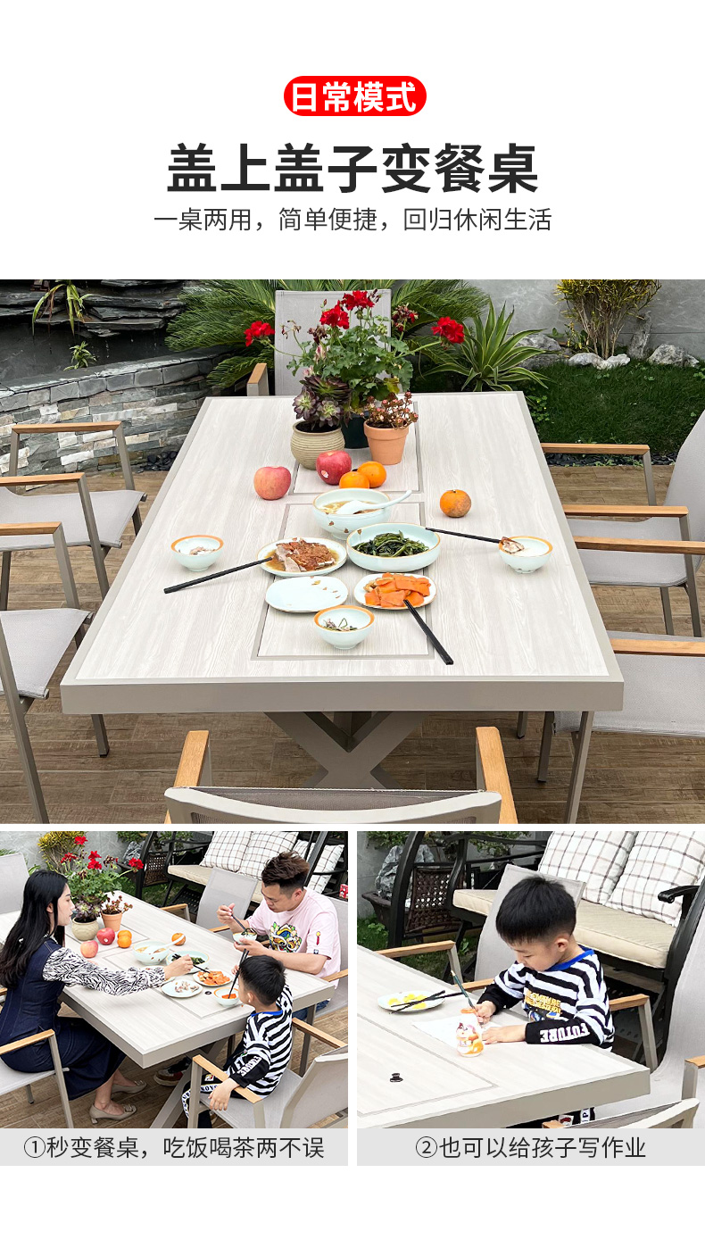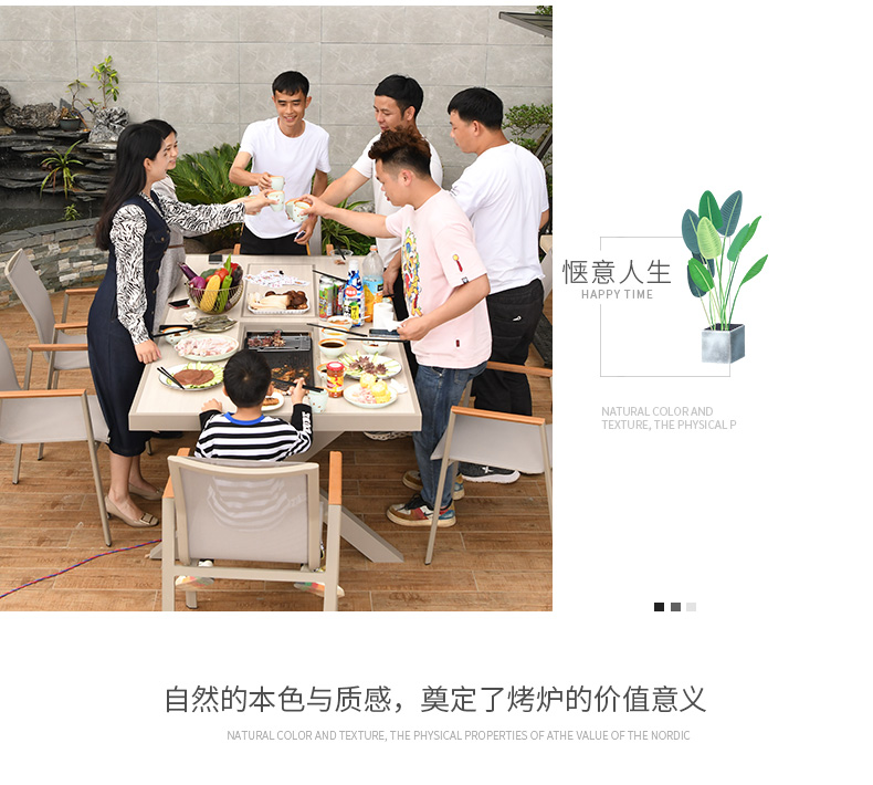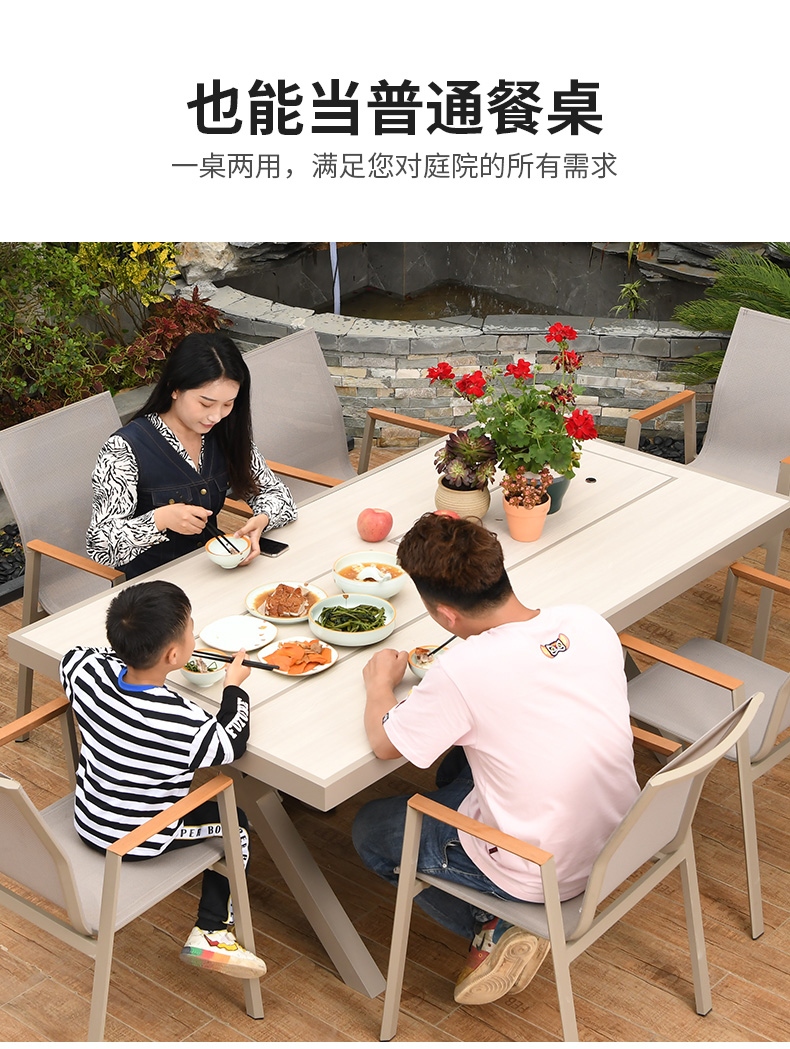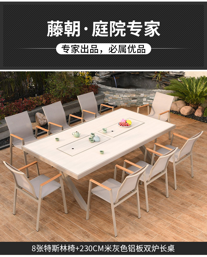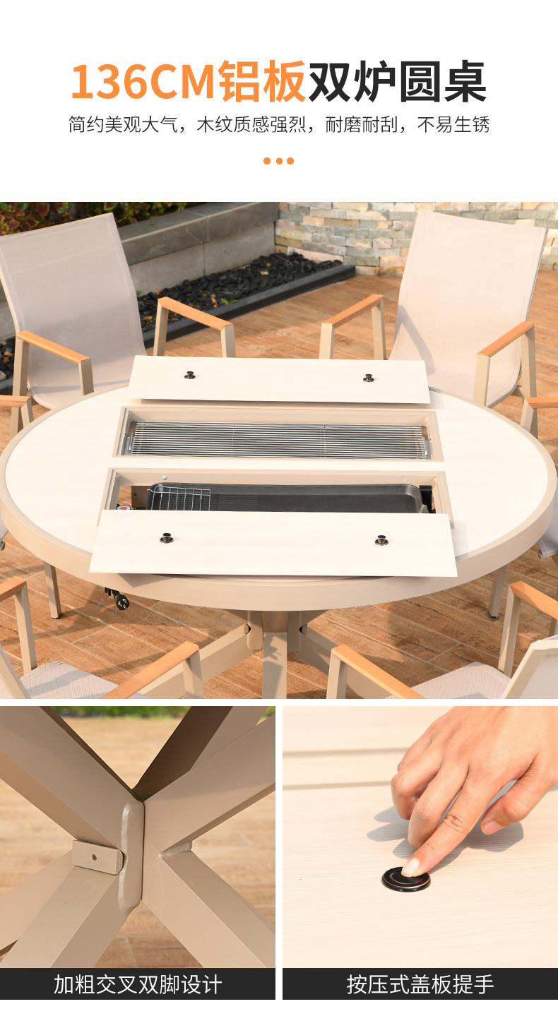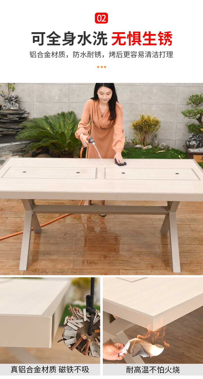 产品简介:藤朝中式庭院烧烤桌椅户外铝合金碳烤两用桌椅家用室外电烤长桌椅...
