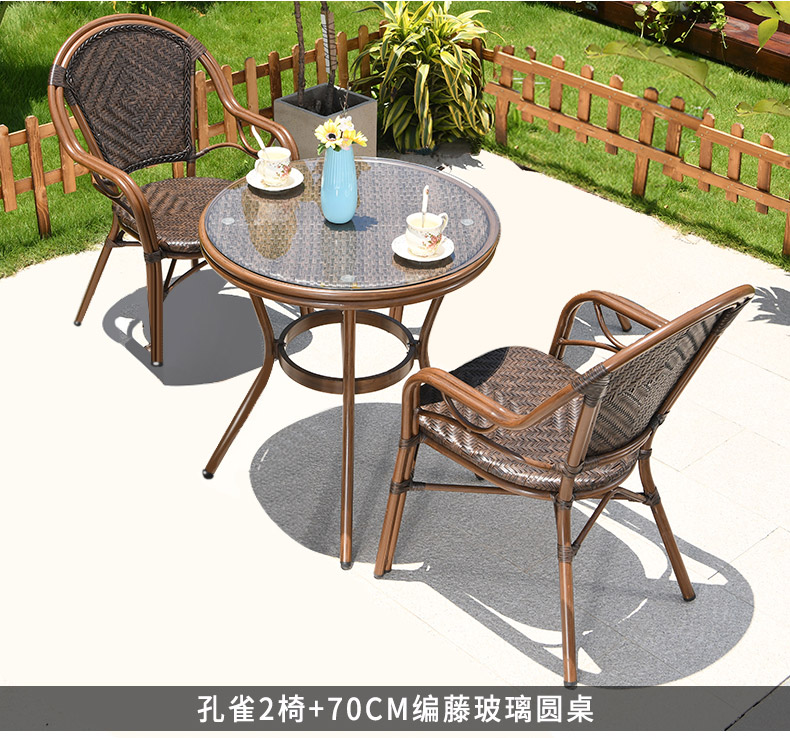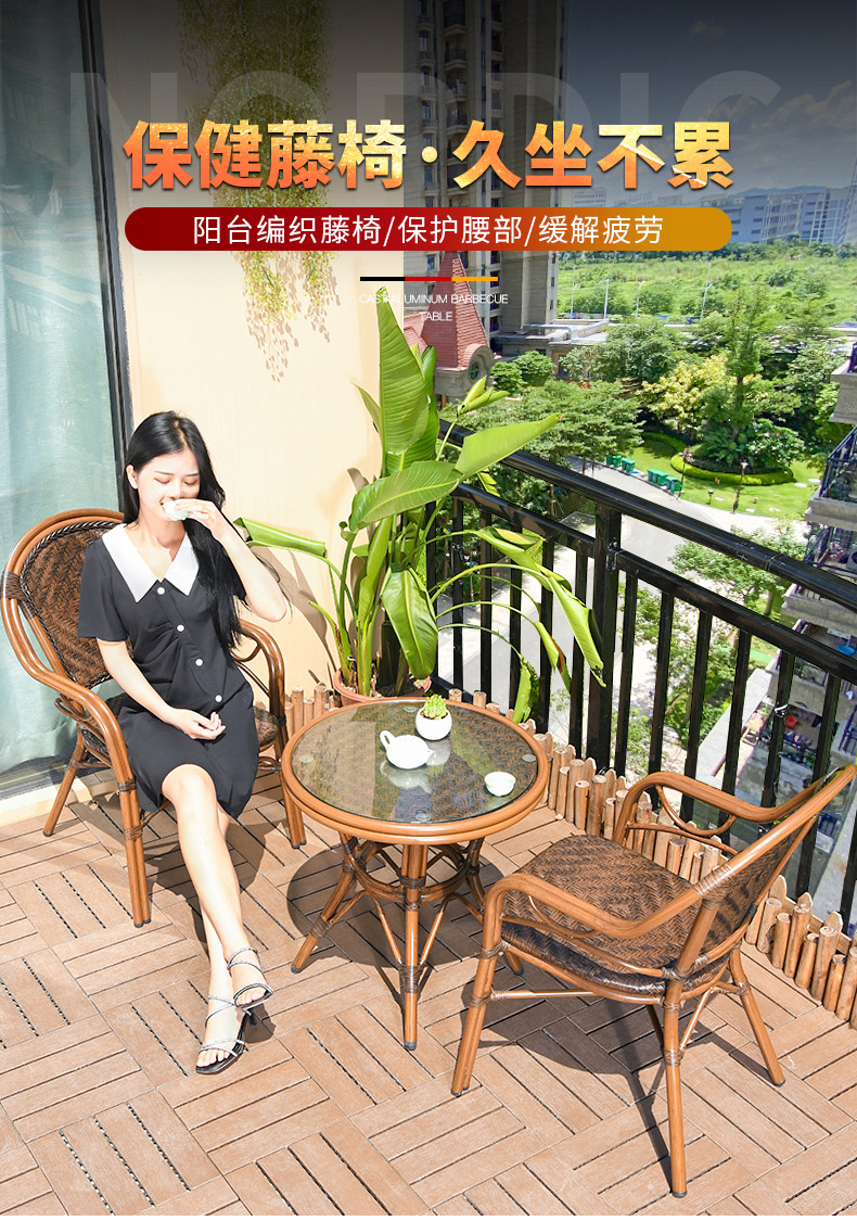 产品简介:藤朝藤椅三件套阳台小桌椅茶几家用休闲喝茶编中式奶茶店室外咖啡...