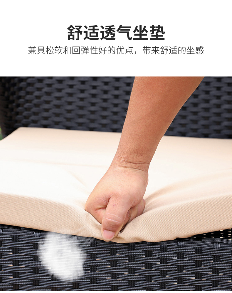 产品简介:相信很多小伙伴在装修自家庭院的时候,一定都设想过这样的场景:种满了各种花草的小院子,你躺在院子里的沙发上,一缕阳光从墙外伸进来,你半眯着眼一边抚摸着小猫咪,一边听着今天的新闻,真的好惬意对吧。这款庭院藤编沙发椅,防水耐晒,舒适透气,是户外沙发的不二选择...