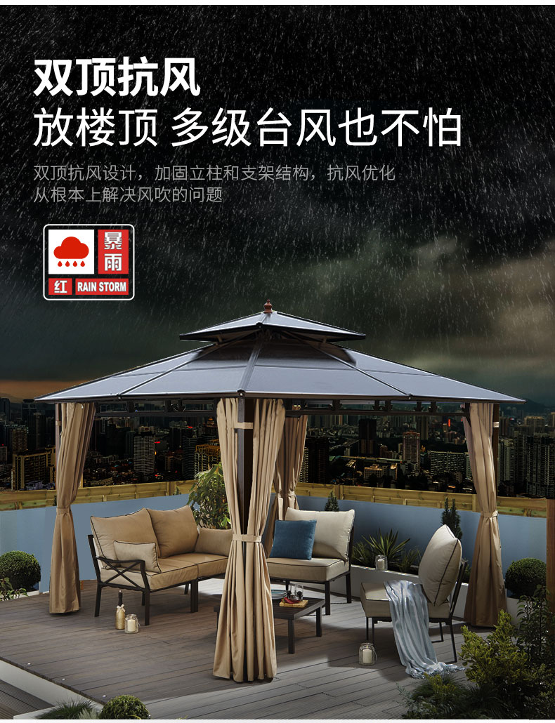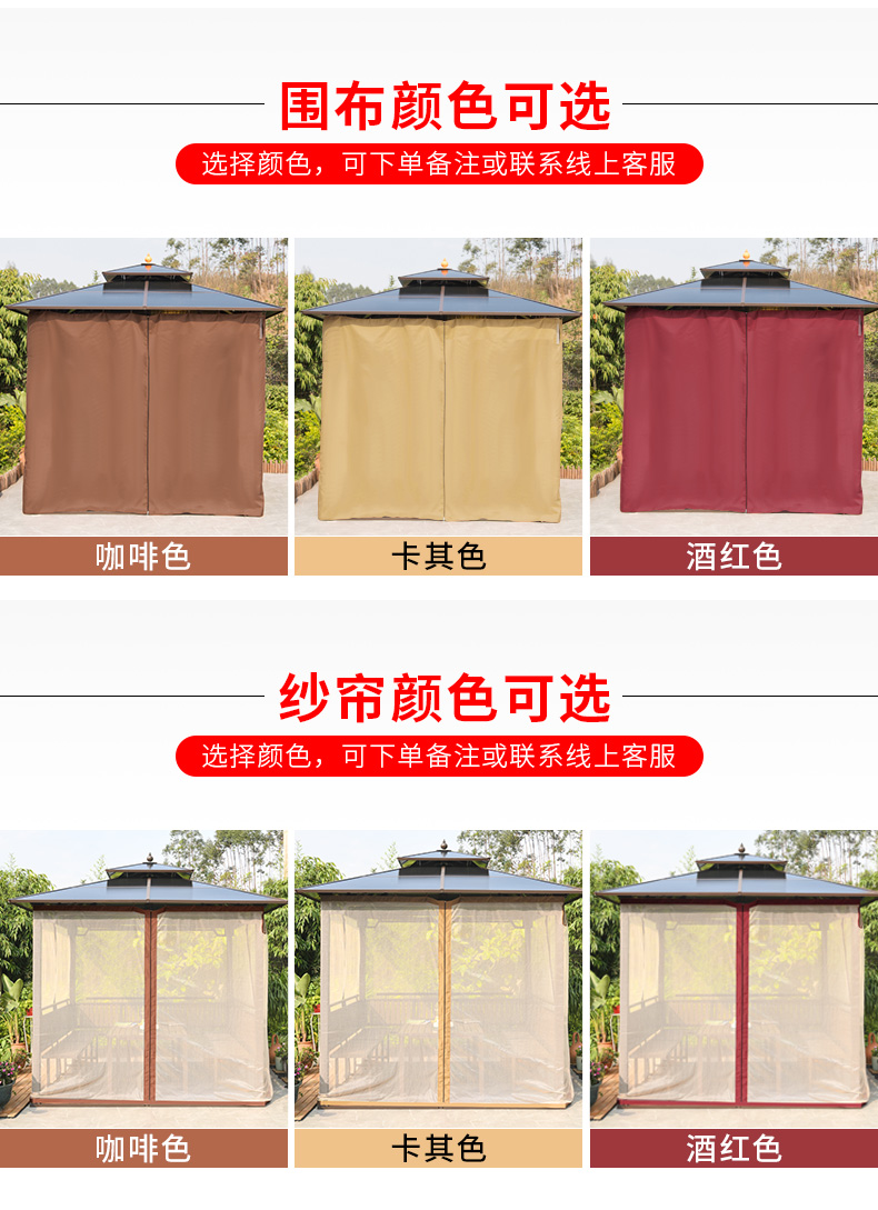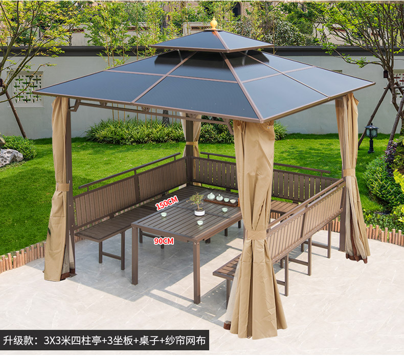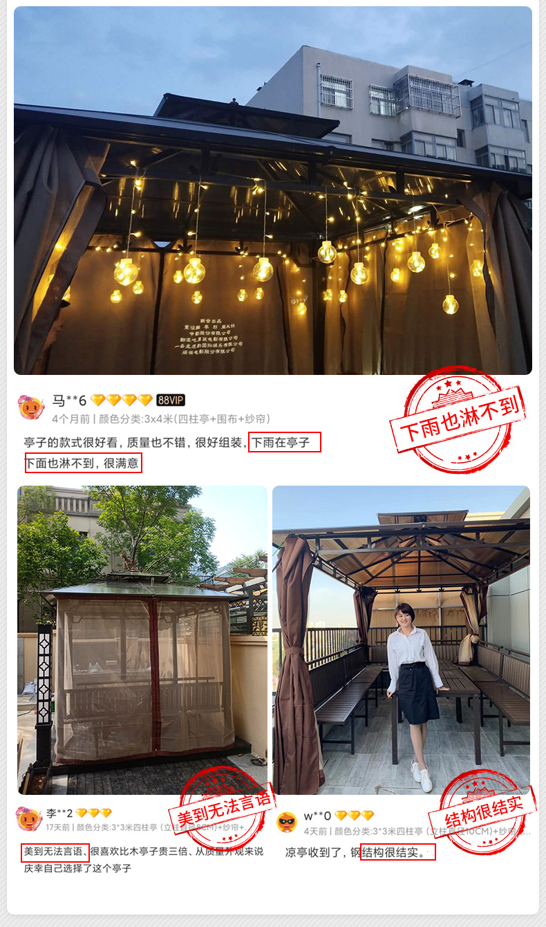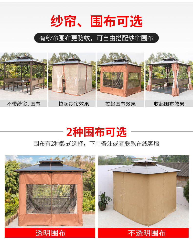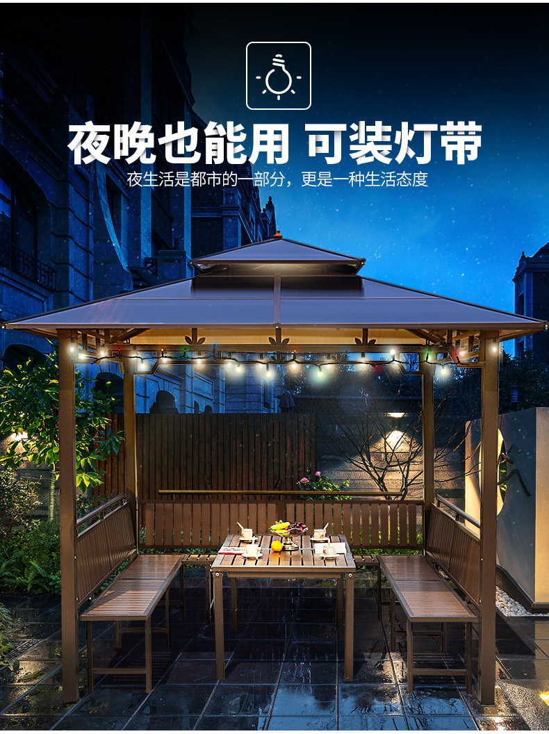 产品简介:夜晚可照明,庭院凉亭日夜两用,抗暴风雨,放庭院有档次的花园凉亭...