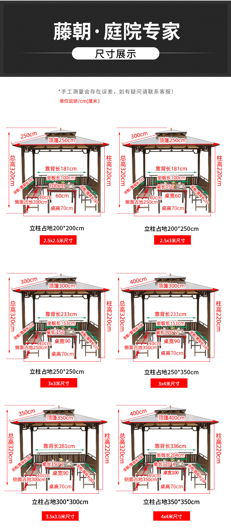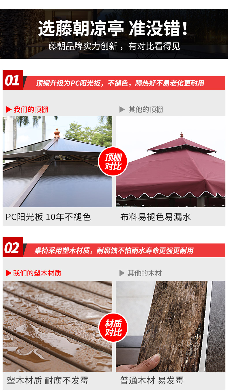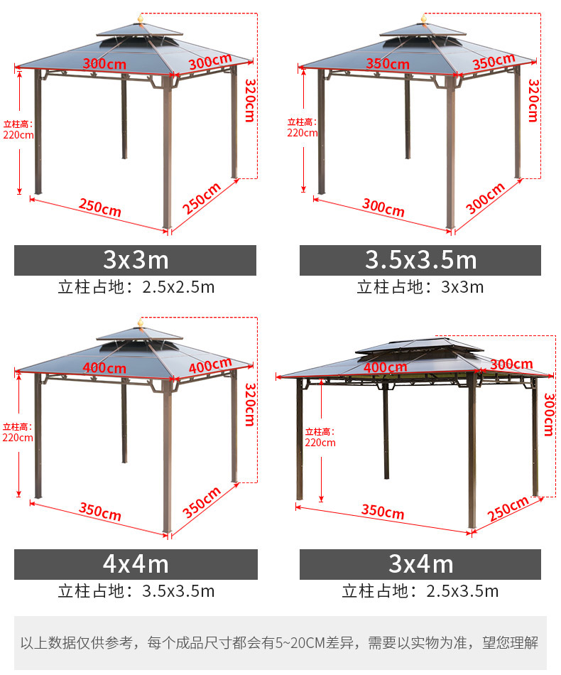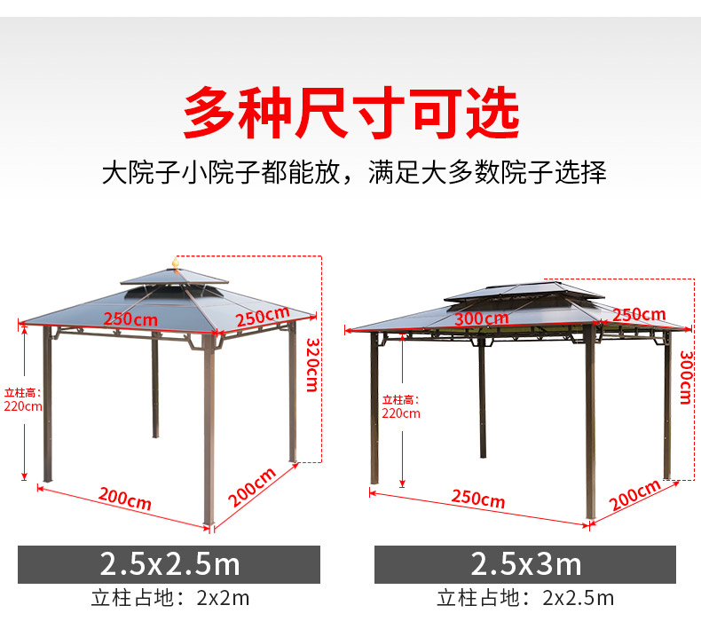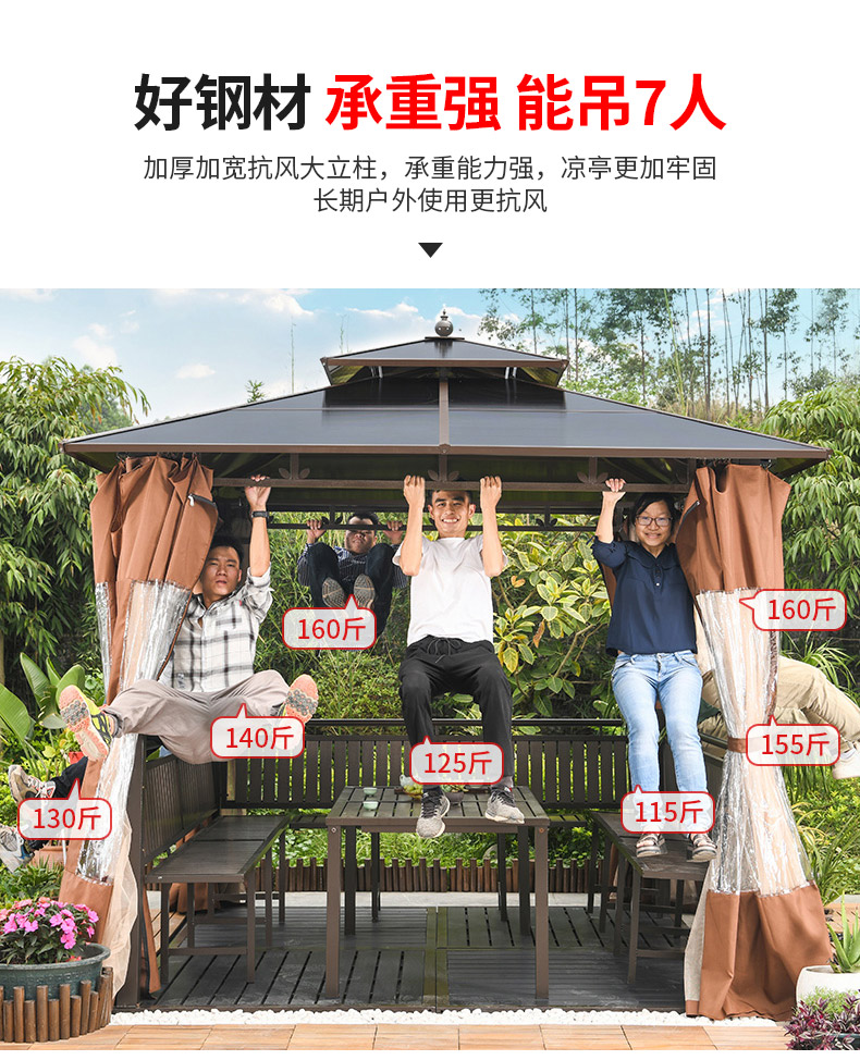 产品简介:夜晚可照明,庭院凉亭日夜两用,抗暴风雨,放庭院有档次的花园凉亭...