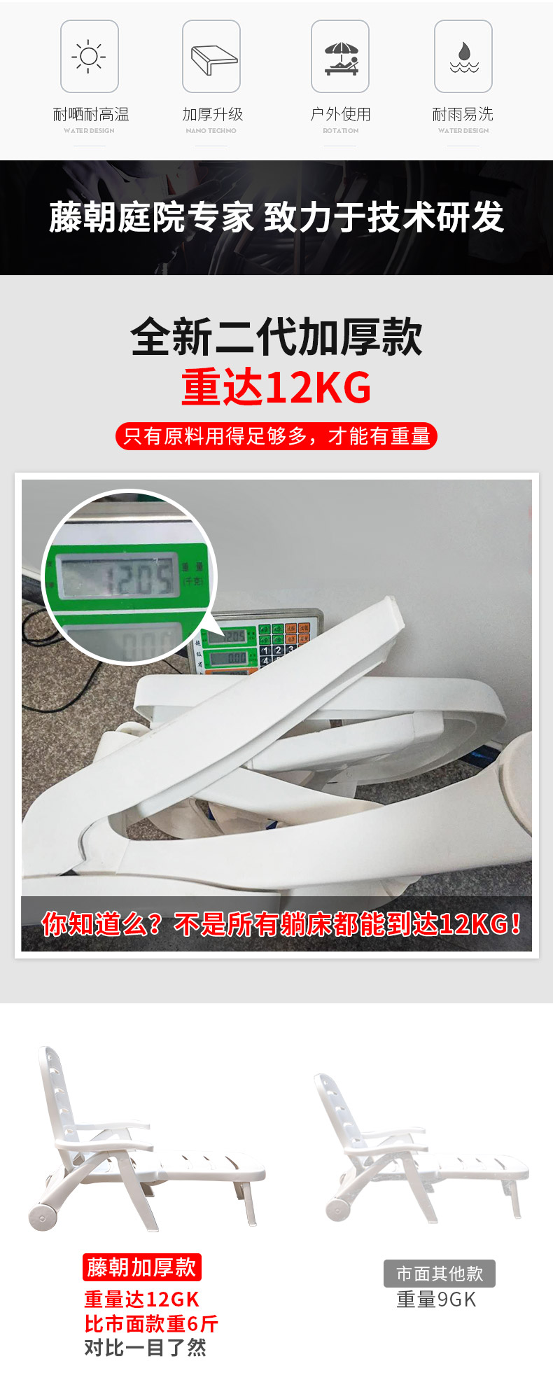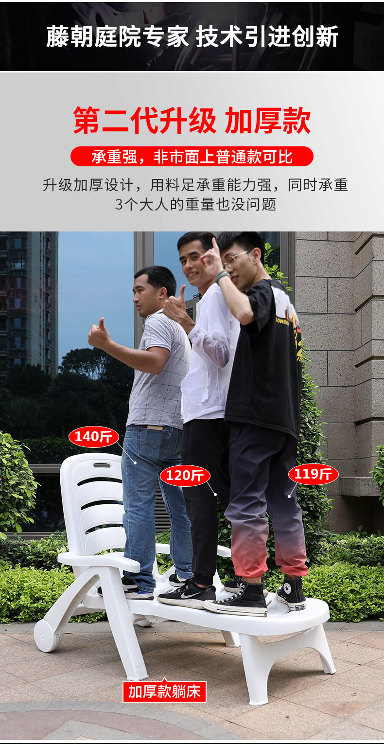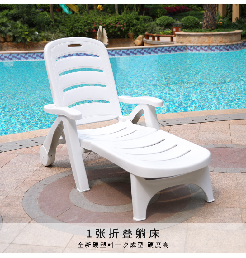 产品简介:藤朝户外游泳池躺床躺椅庭院室外露天阳台塑料折叠休闲编藤沙滩椅...