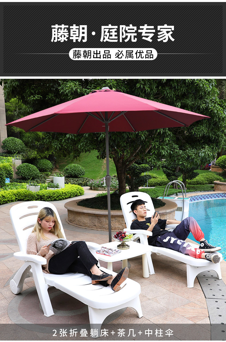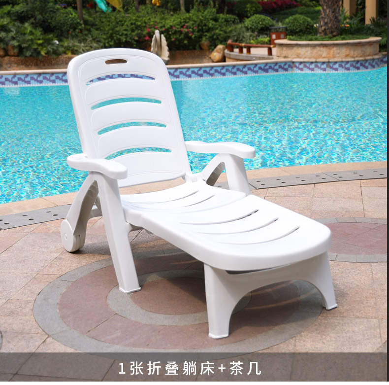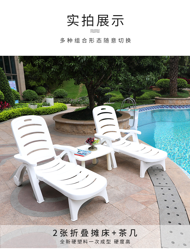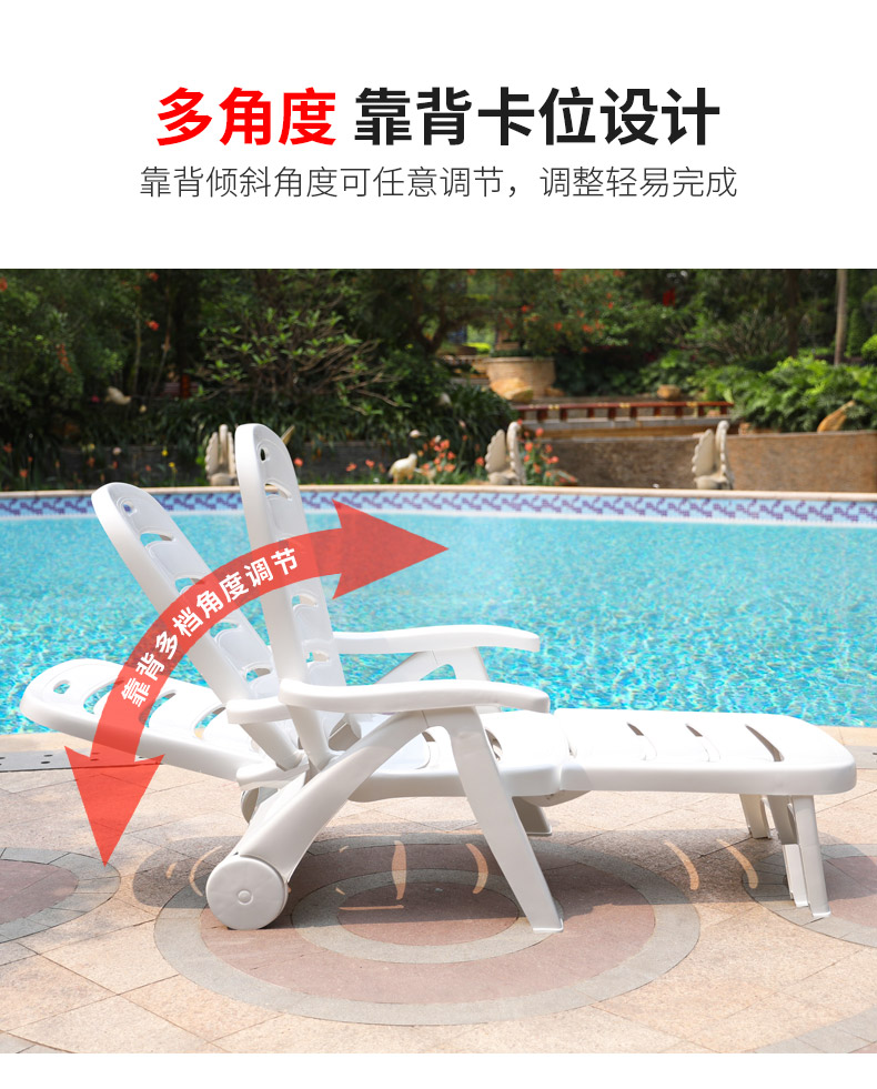 产品简介:藤朝户外游泳池躺床躺椅庭院室外露天阳台塑料折叠休闲编藤沙滩椅...